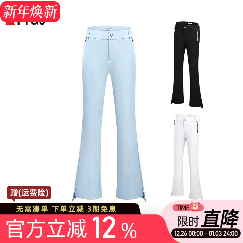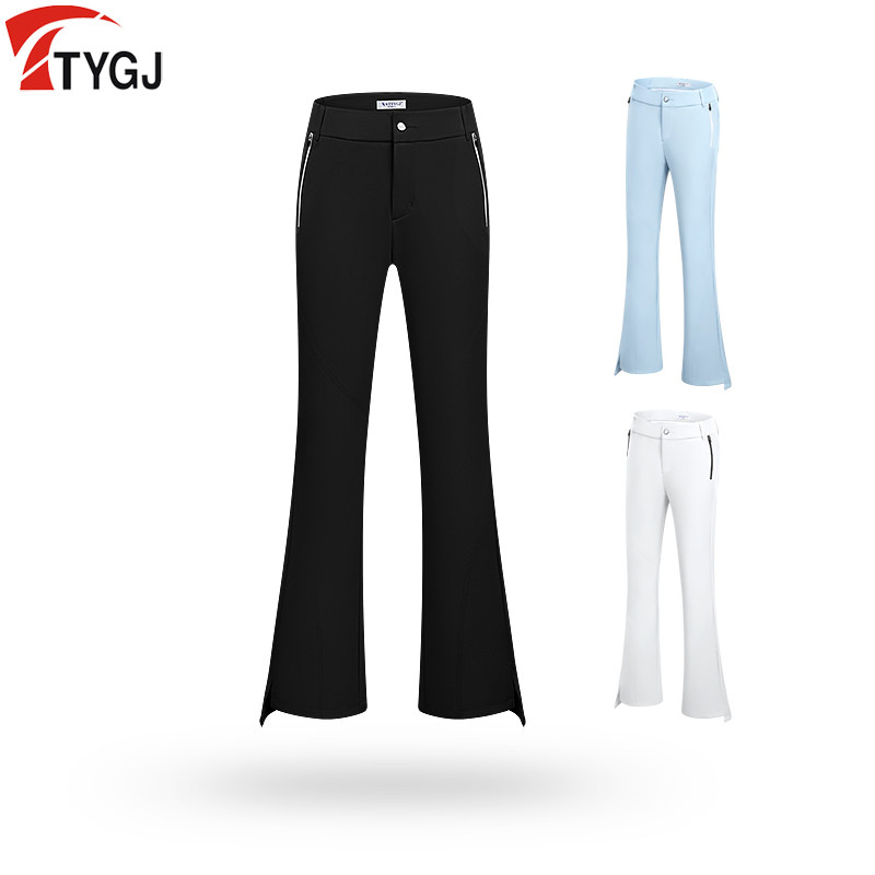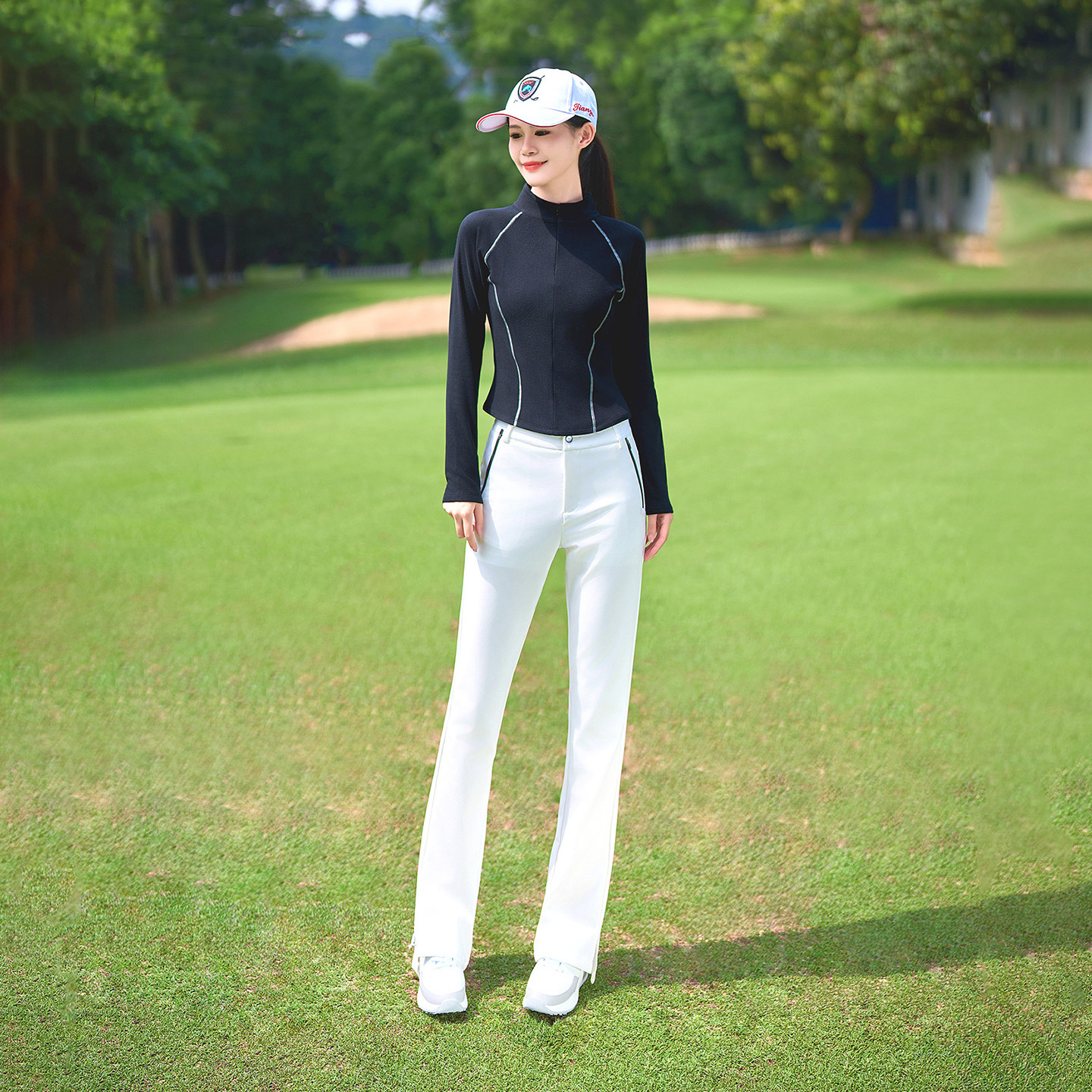 新款高尔夫球女士长裤松紧中高腰显瘦微喇叭裤开叉速干运动球裤子