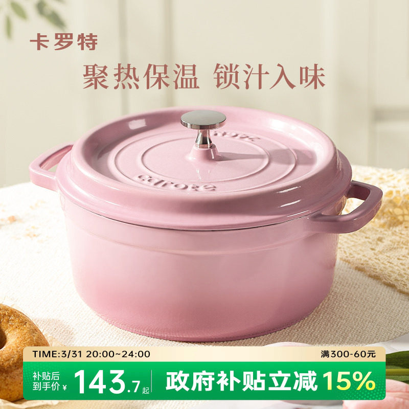 卡罗特珐琅锅铸铁锅砂锅炖锅家用送礼物炖盅煲汤锅焖锅不粘锅煮锅