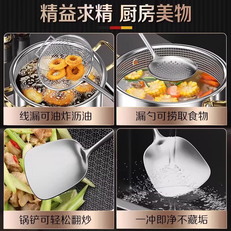 不锈钢加厚锅铲炒勺厨具套装家用炒菜煎铲漏勺捞面勺大汤勺炒铲子