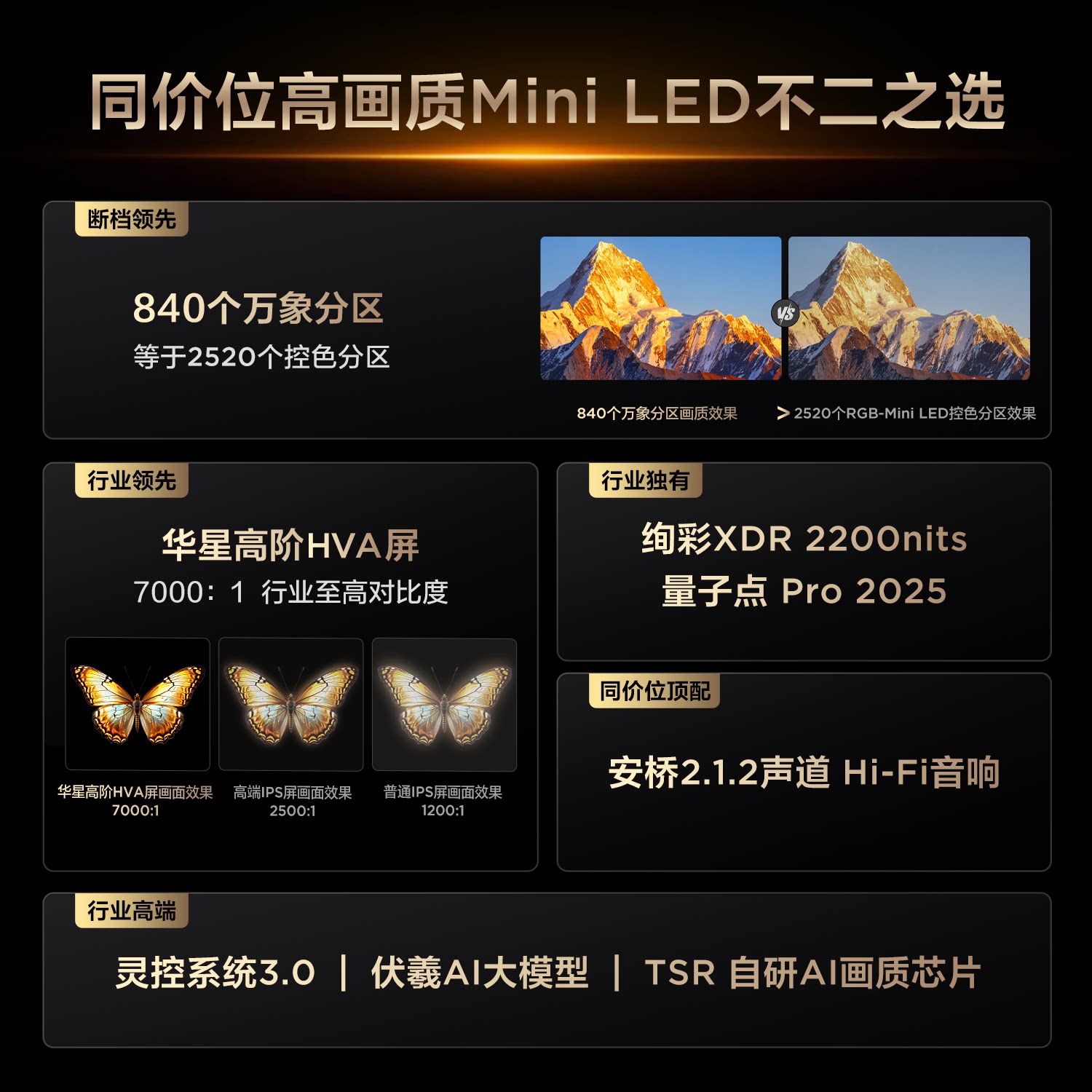 TCL电视 85T7L QD-Mini LED 万象分区华星屏 平板电视