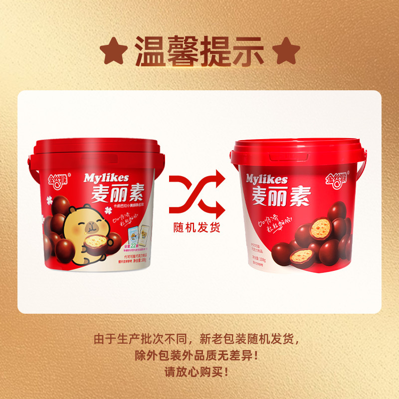怡浓麦丽素桶装520g怀旧黑巧克力豆夹心朱古力脆心球麦芽儿童零食