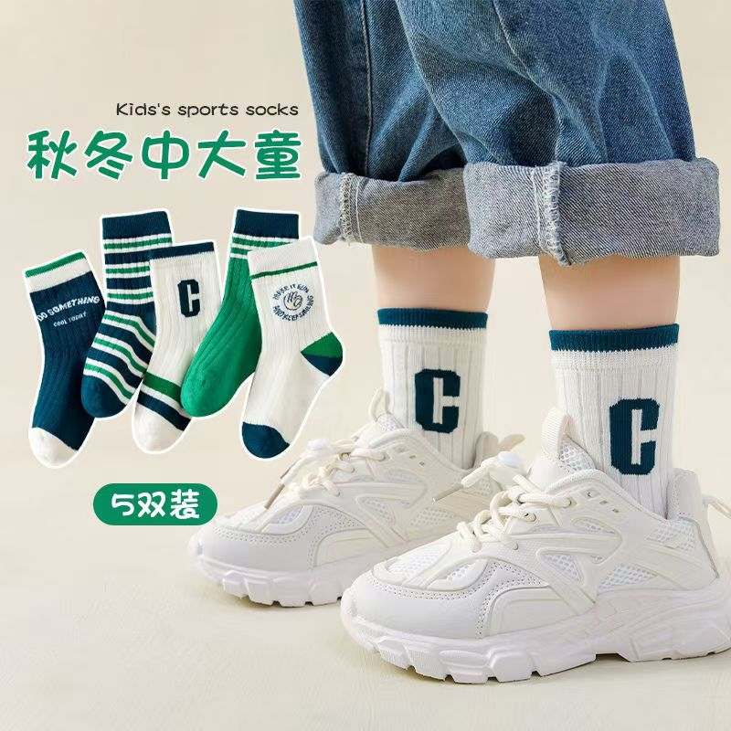 儿童男童袜子春秋新款中筒袜男孩棉袜男大童运动袜秋纯棉防臭吸汗