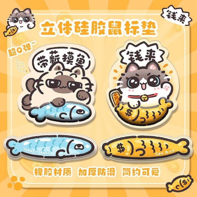 摸金鱼小猫鼠标垫手托护腕垫女小号创意办公室桌垫键盘垫新款钱来