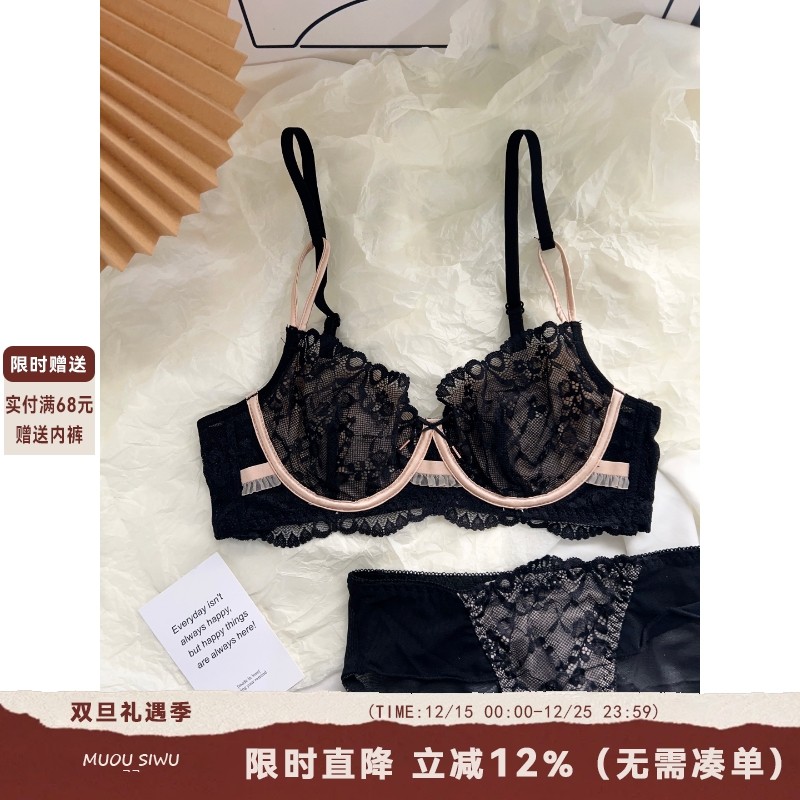 性感蕾丝兔耳朵内衣女超薄款大胸显小收副乳防下垂软钢圈文胸套装