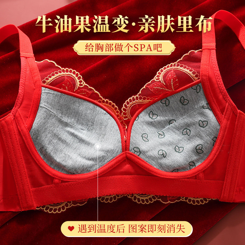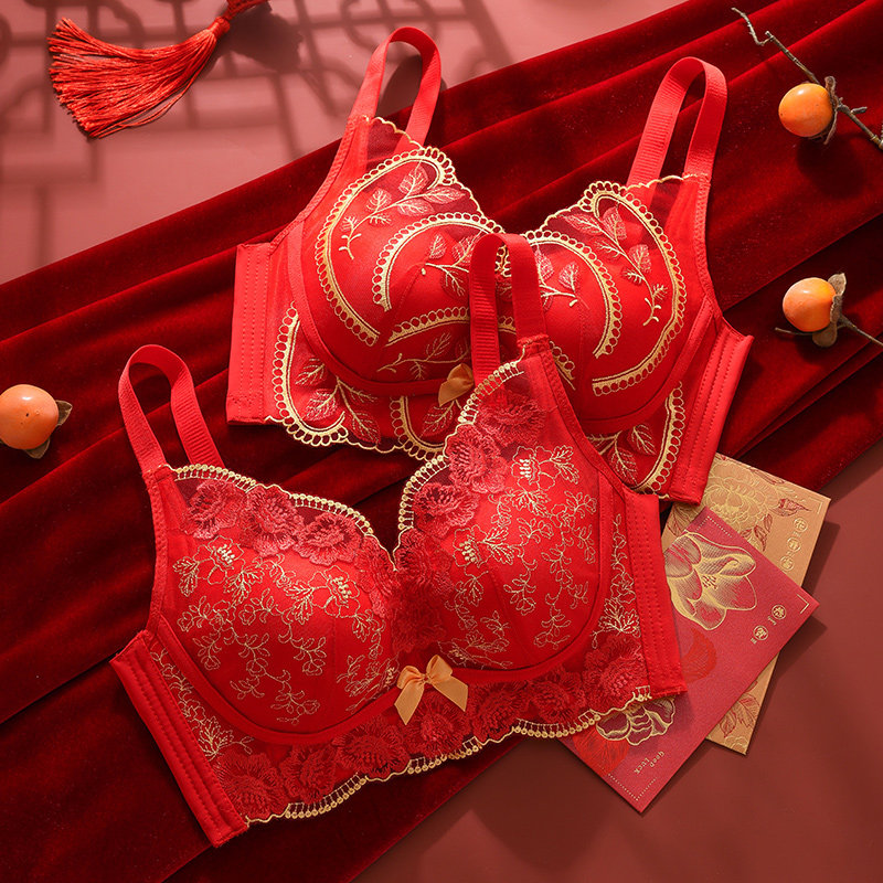 本命年马年刺绣红色内衣女结婚新娘内裤套装无痕小胸聚拢文胸礼盒