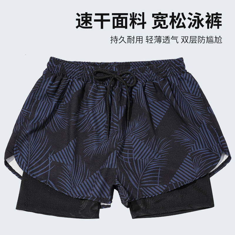2025新款男士双层防尴尬温泉海边度假专业大码遮肉泳衣游泳沙滩裤