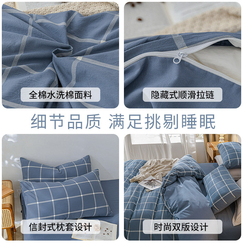无印良品全棉四件套100纯棉床单被套学生宿舍单人床上用品三件套