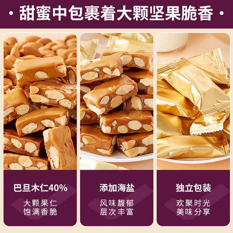 海盐巴旦木太妃糖官方旗舰店杏仁花生焦糖夹心法式过年糖果纯手工