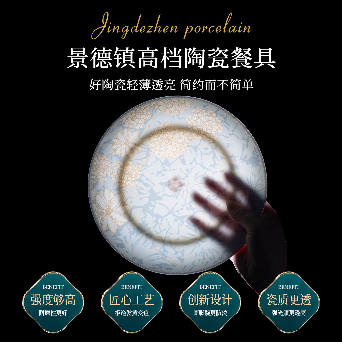 2025新款碗碟套装家用陶瓷饭碗高颜值轻奢景德镇餐具碗盘乔迁送礼
