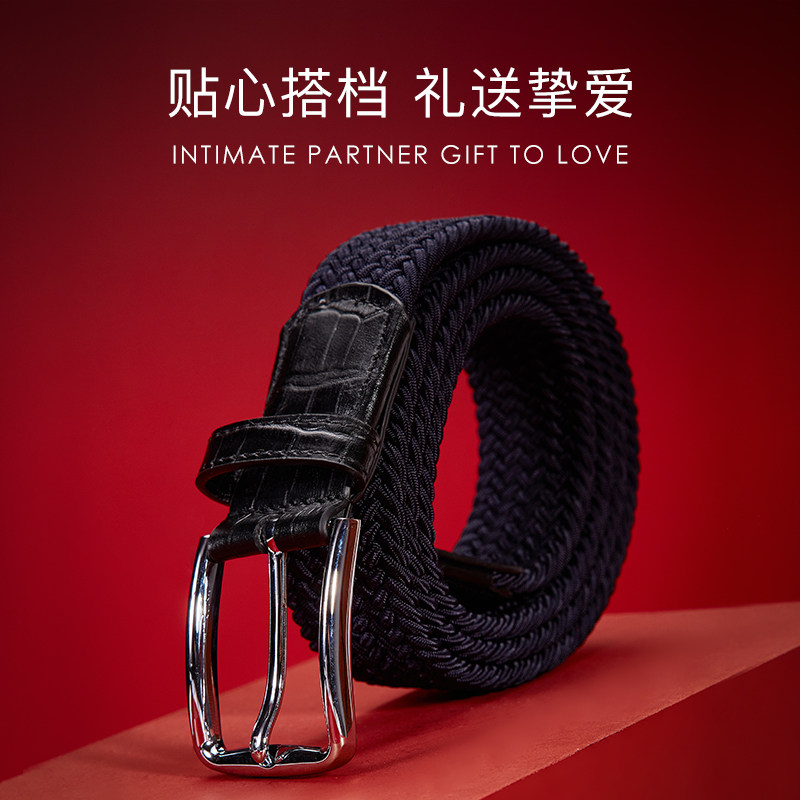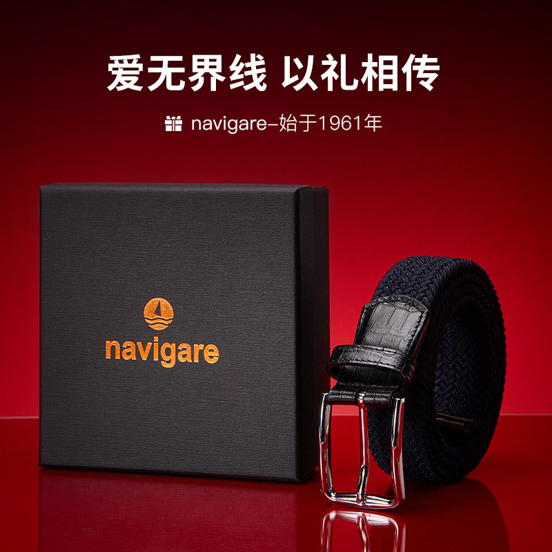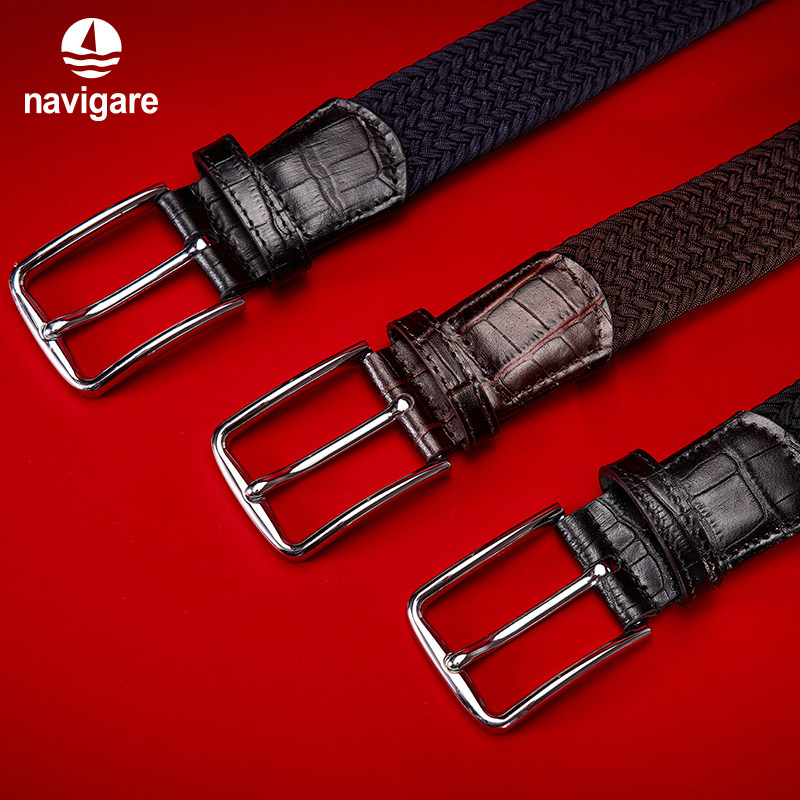 Navigare意大利小帆船针扣腰带男士复古休闲编织皮带免打孔