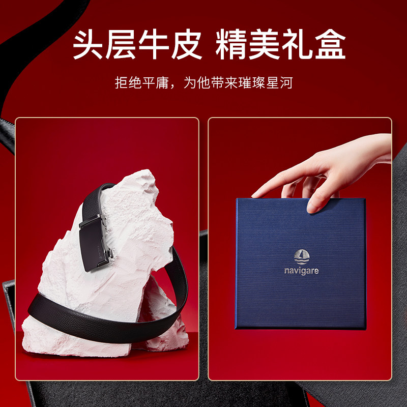 Navigare意大利小帆船高档头层牛皮腰带新款自动扣真皮男士皮带
