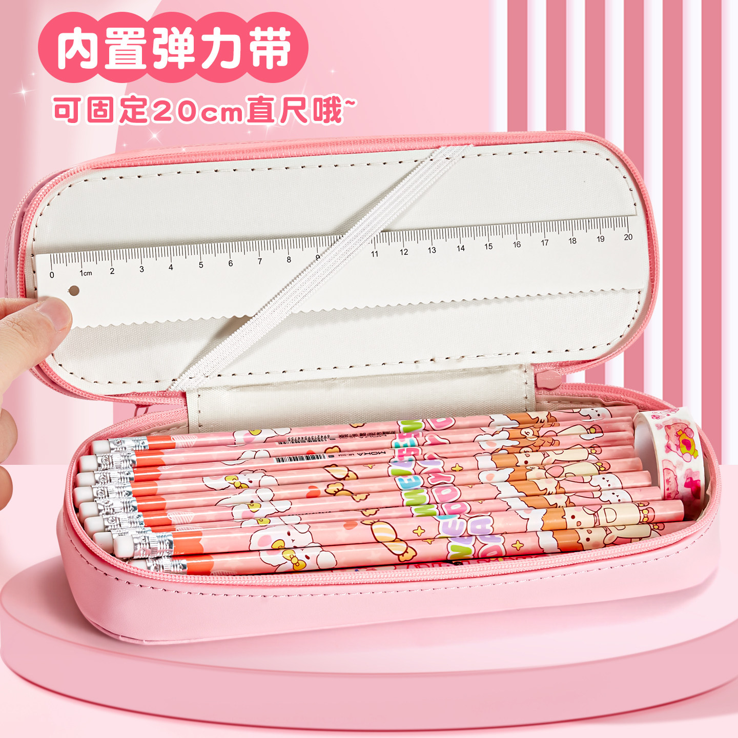 双层立体笔袋高颜值女生大容量铅笔袋简约款