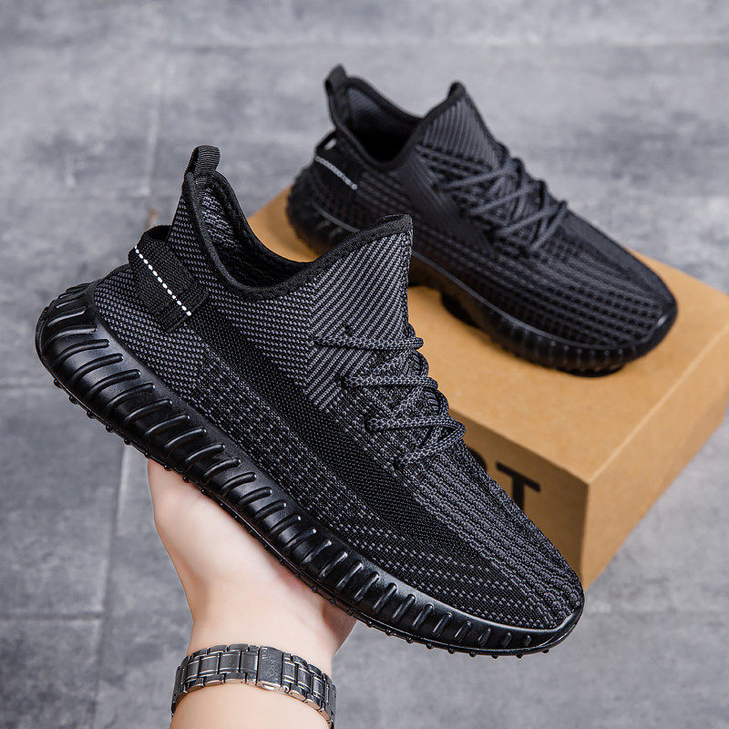 莆田男鞋夏季飞织薄款椰子运动网面网鞋休闲黑色软底潮鞋春季全黑