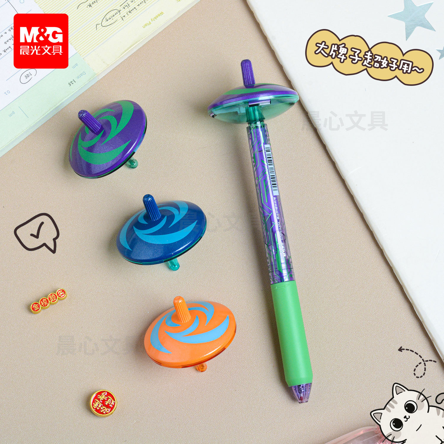 晨光陀螺转转笔ST尖学生办公0.5旋转出芯黑签字笔高颜值AGPK8401