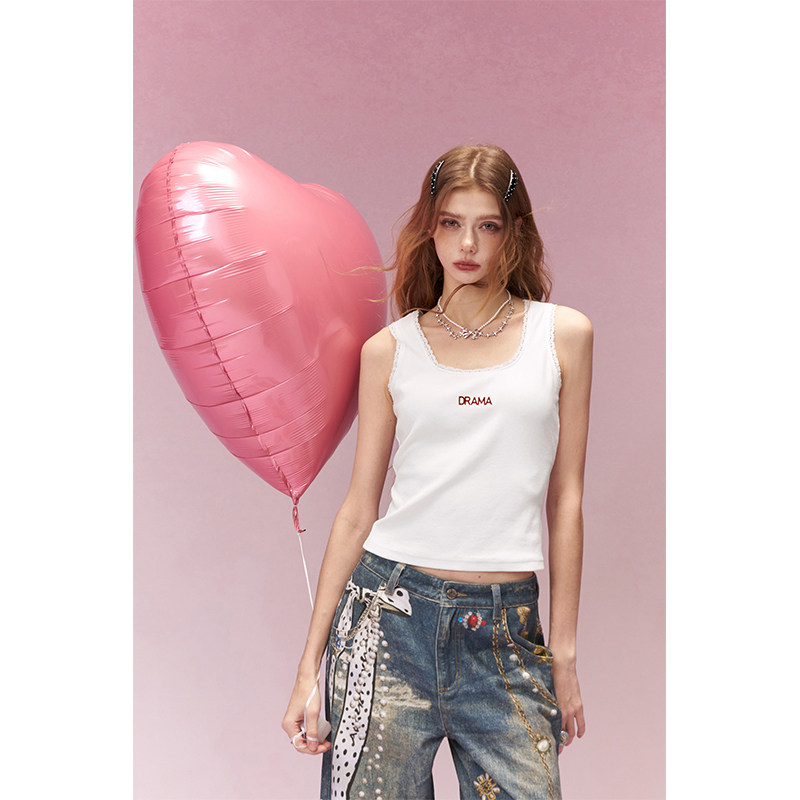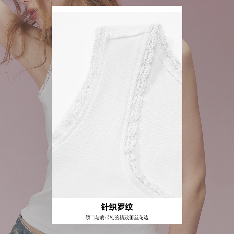 妖精的口袋字母刺绣蕾丝拼接白色吊带女2026春夏新款甜美百搭背心