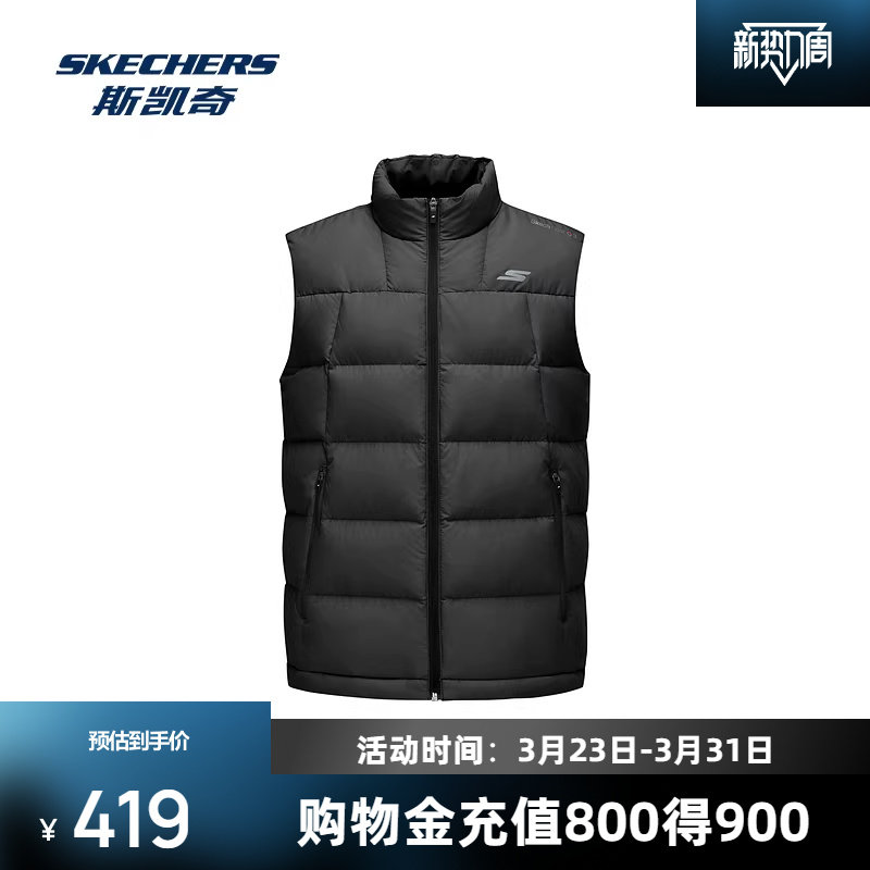 斯凯奇羽绒背心秋冬新品男立领无袖叠穿鸭绒保暖宽松休闲运动健身