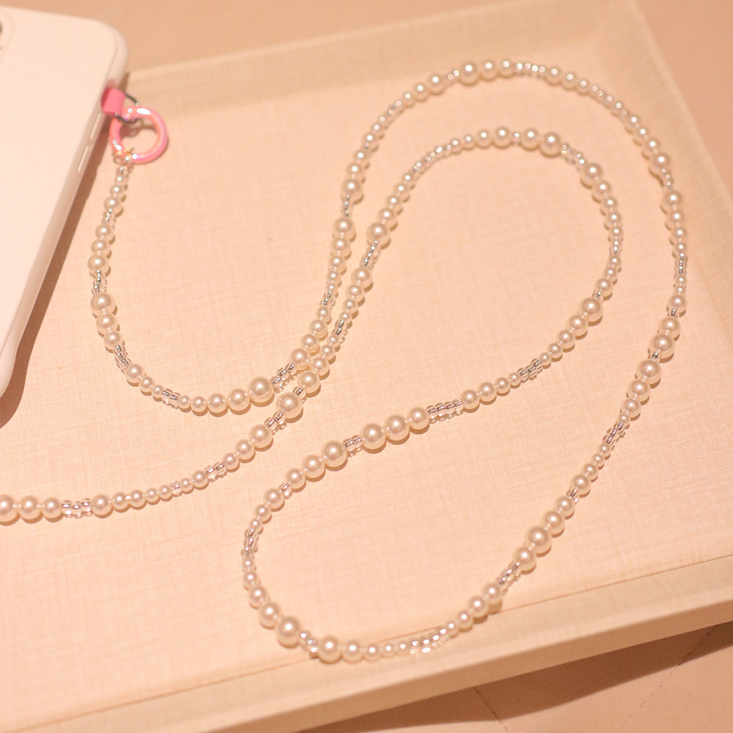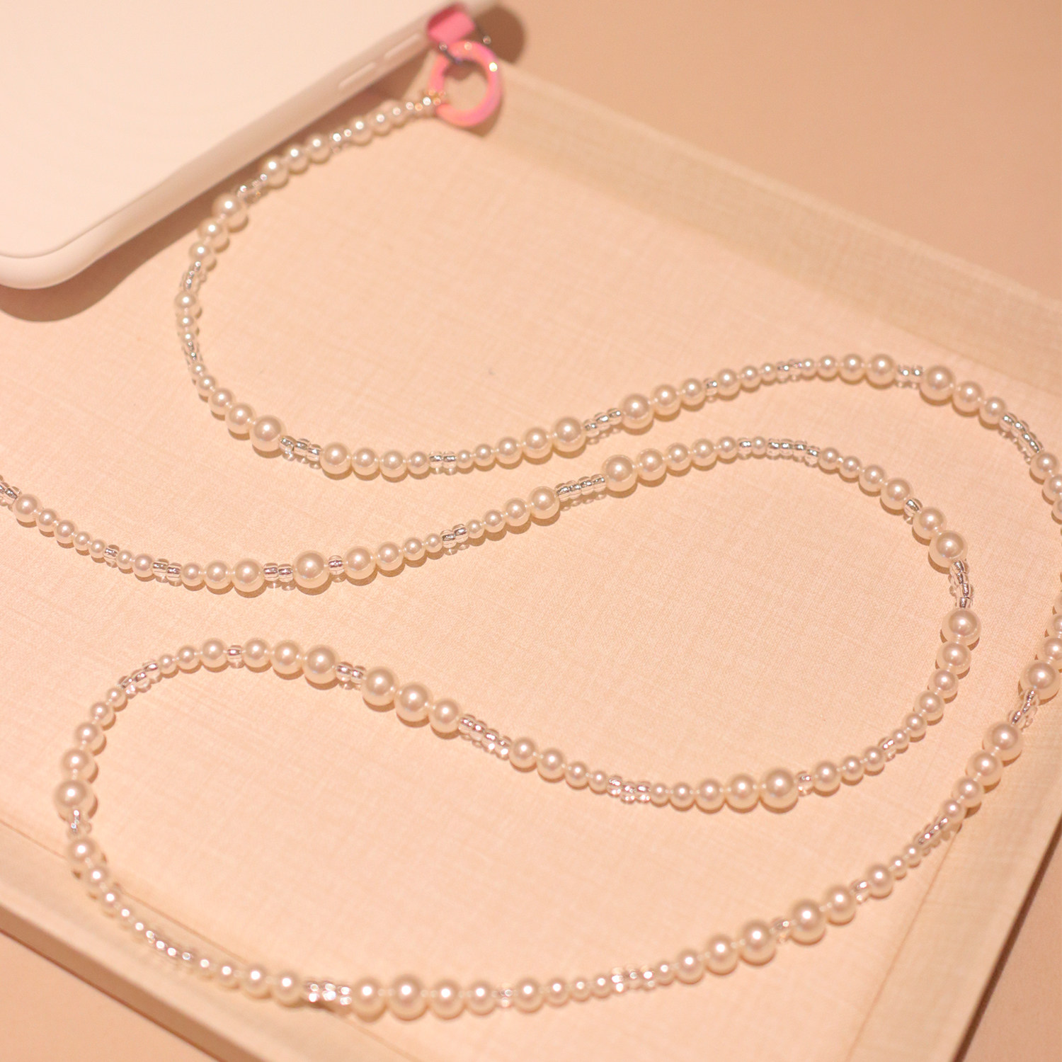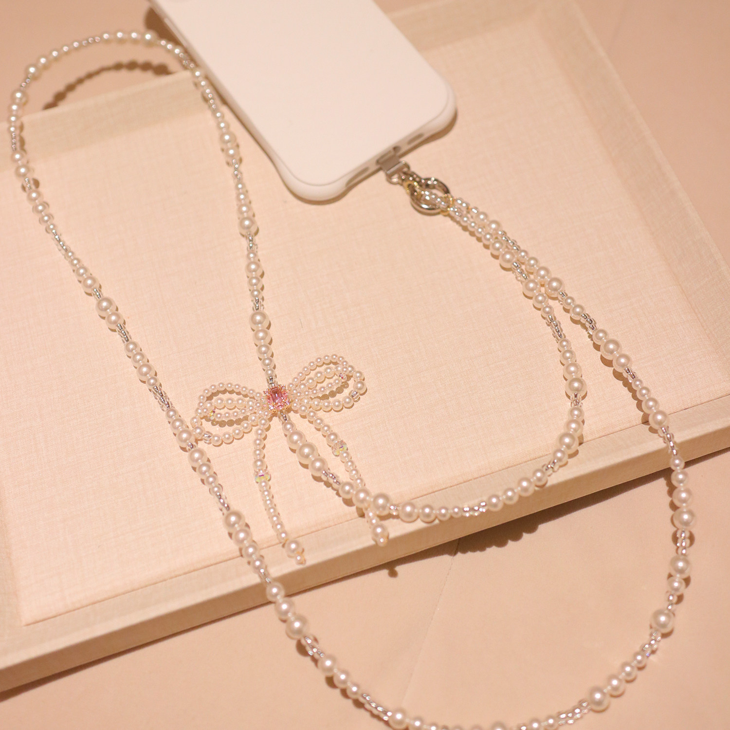 原创手作简约ins风温柔风淑女施家珍珍斜跨手机链精致包包链饰品
