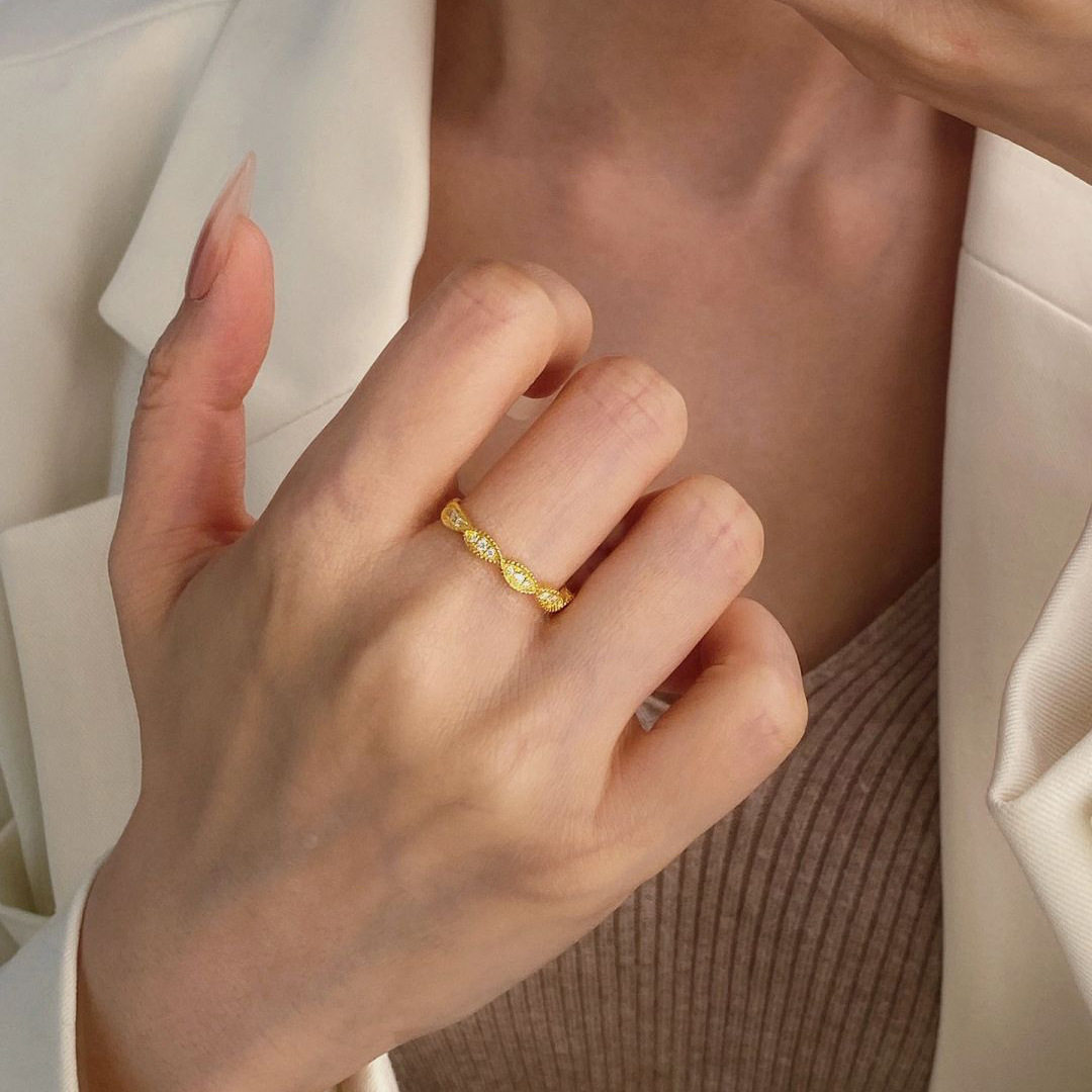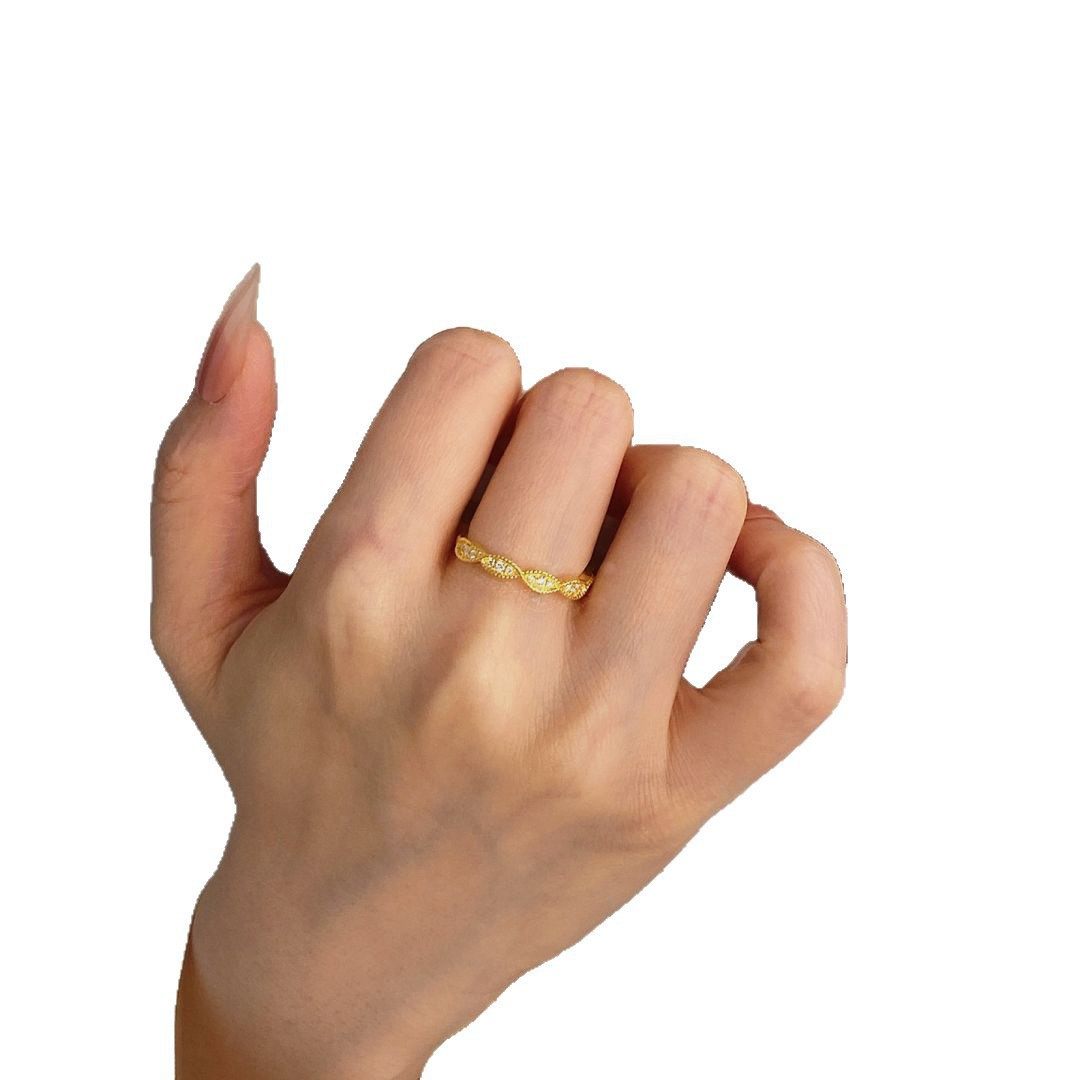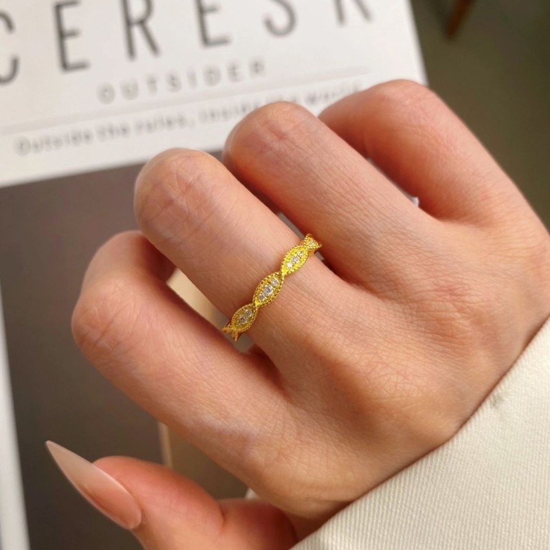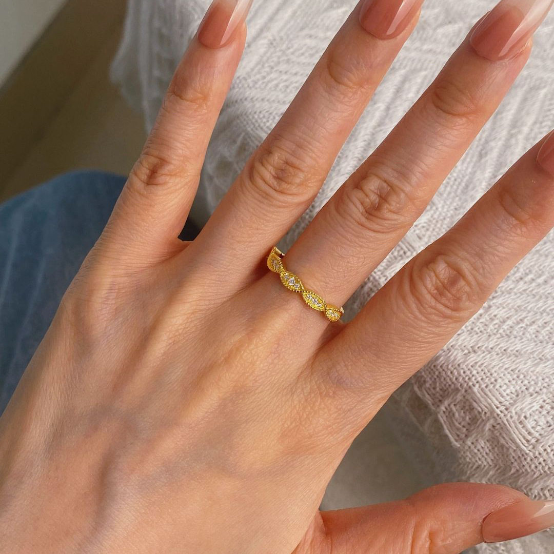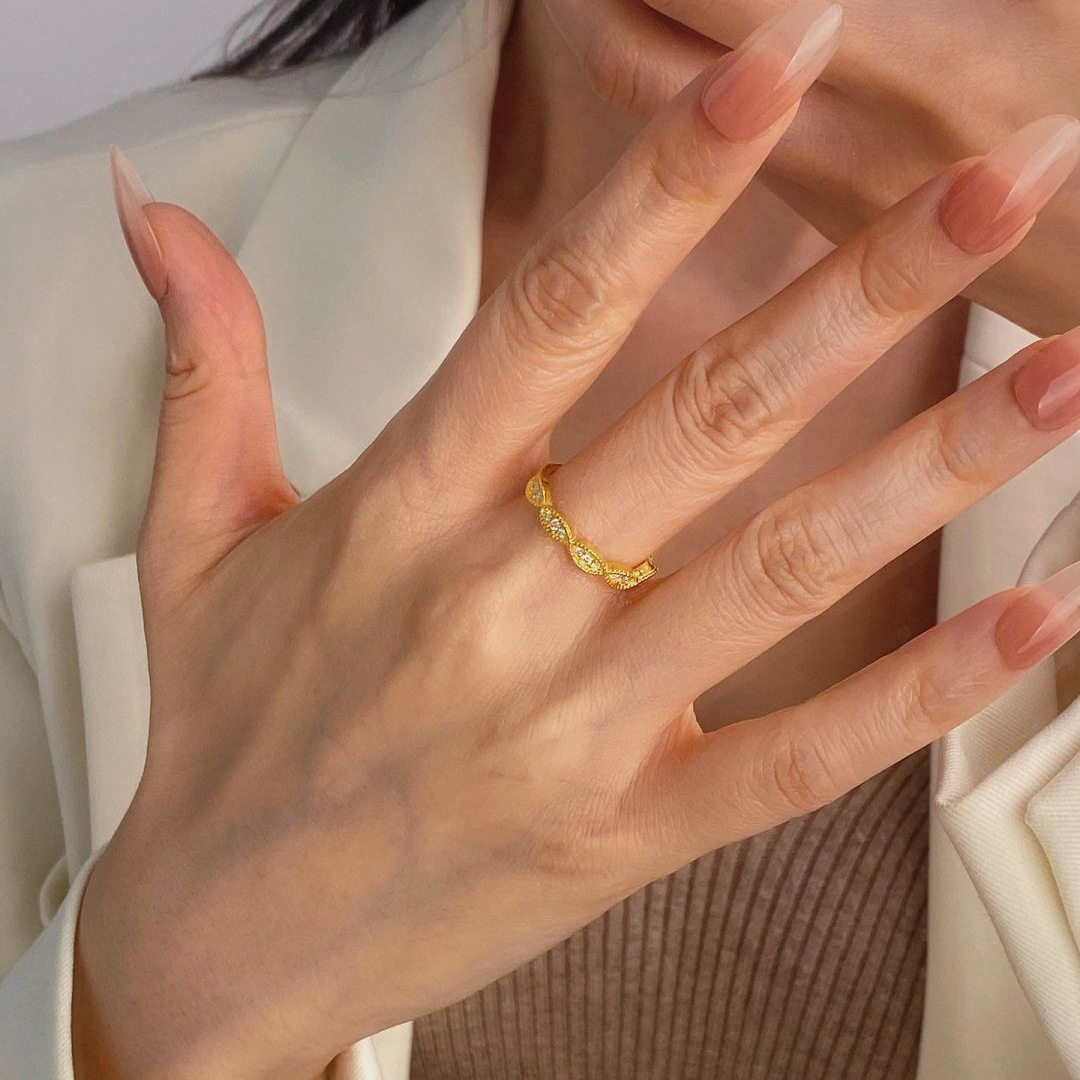 金色柳叶小排戒戒指轻奢复古宫廷风时尚百搭食指戒小众设计指环女
