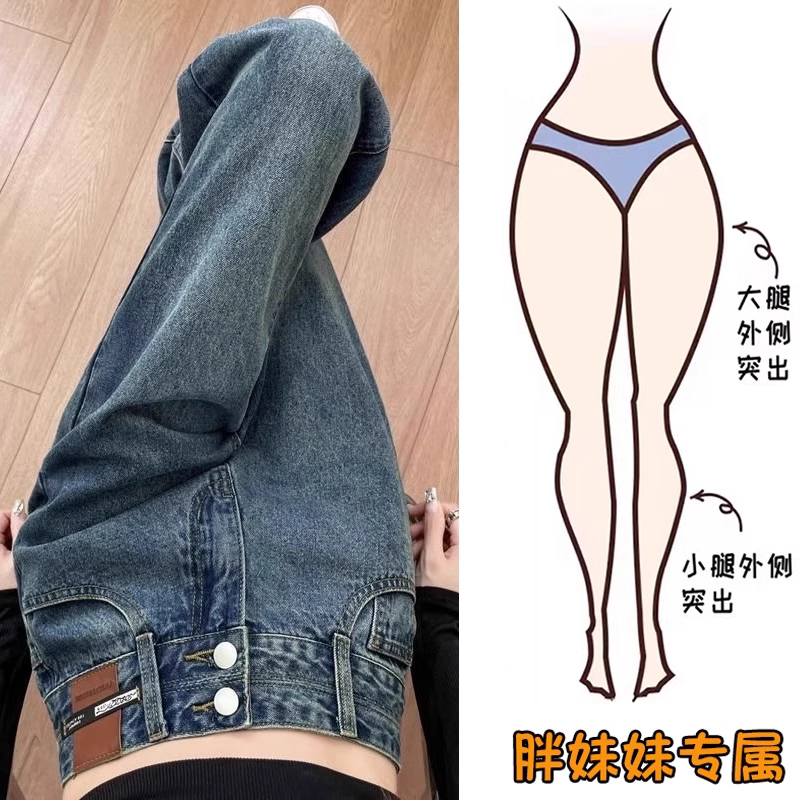 大码胖mm高腰直筒牛仔裤女2026年新款爆款宽松显瘦直筒裤阔腿遮胯