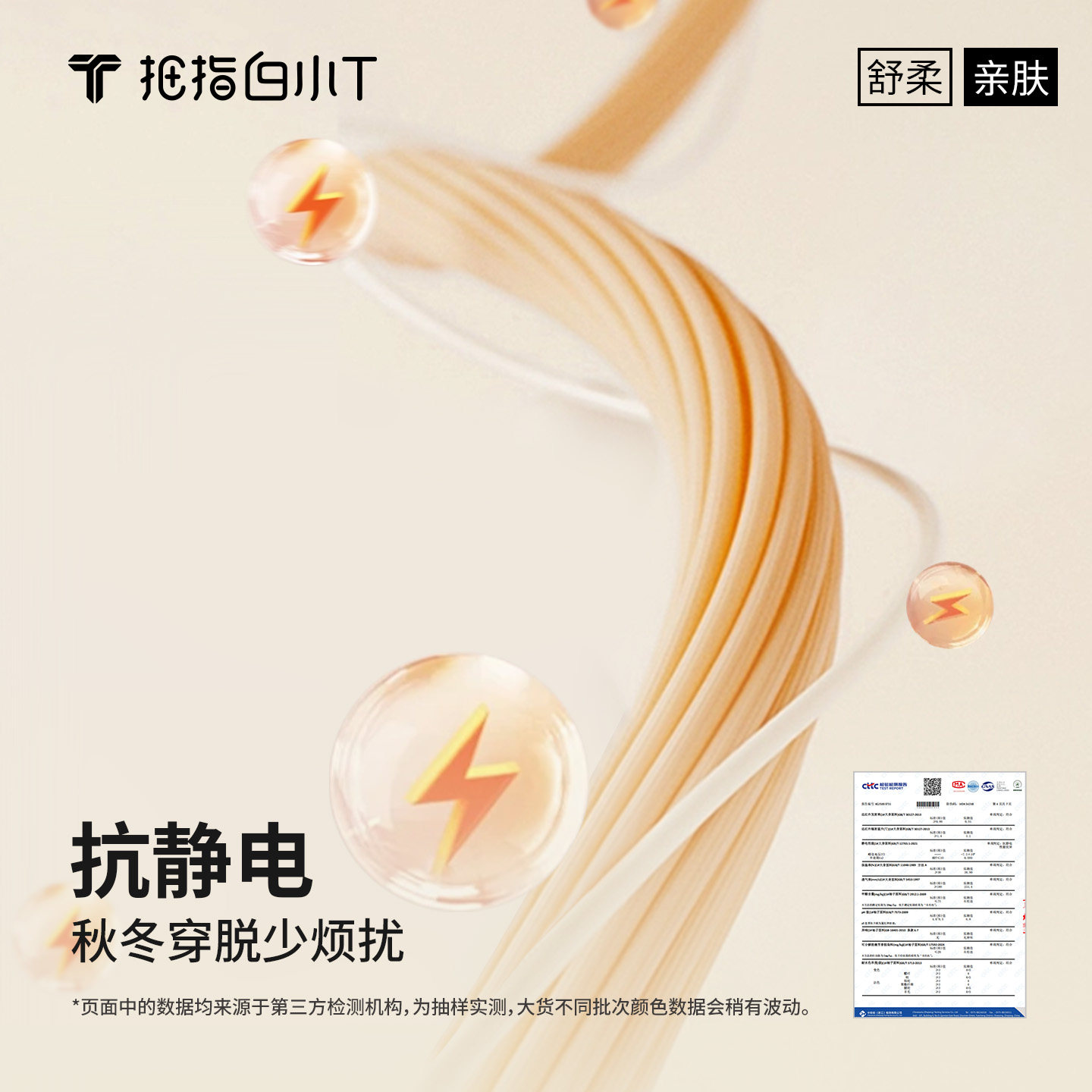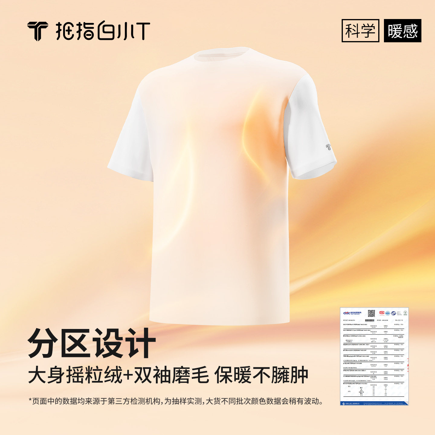 拇指白小T热力加绒T恤秋冬新款保暖舒适短袖圆领纯色体恤衫