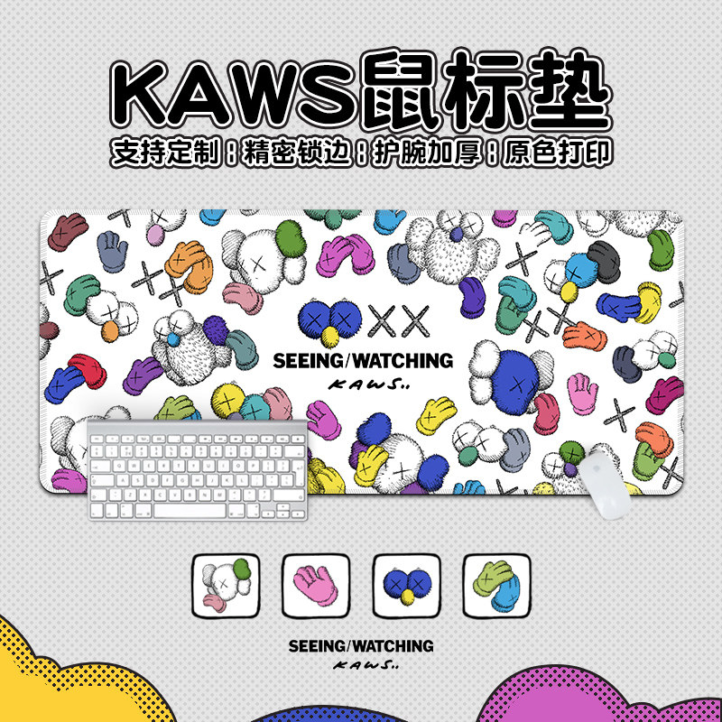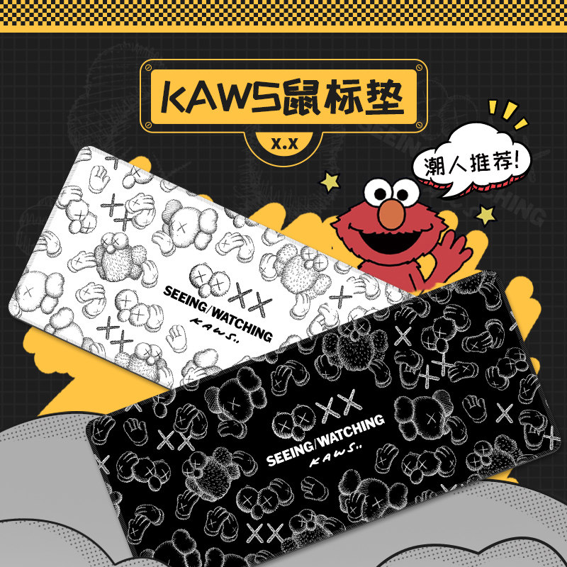芝麻街Kaws鼠标垫超大潮牌桌垫涂鸦游戏大号电脑键盘垫电竞ins风加厚防滑书桌垫可定制男女个性办公桌垫