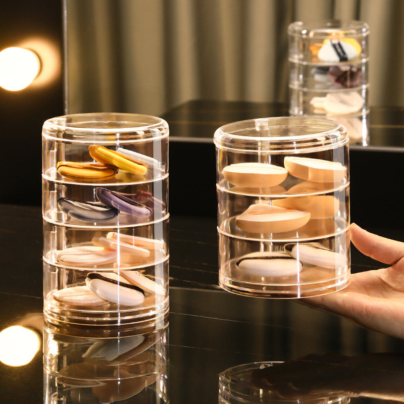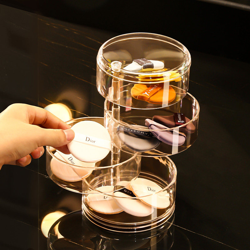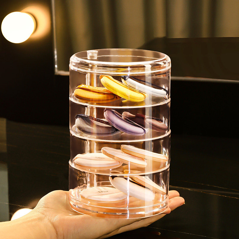 kaman粉扑收纳盒透明防尘旋转化妆品气垫盒多层卸妆棉美妆蛋架子