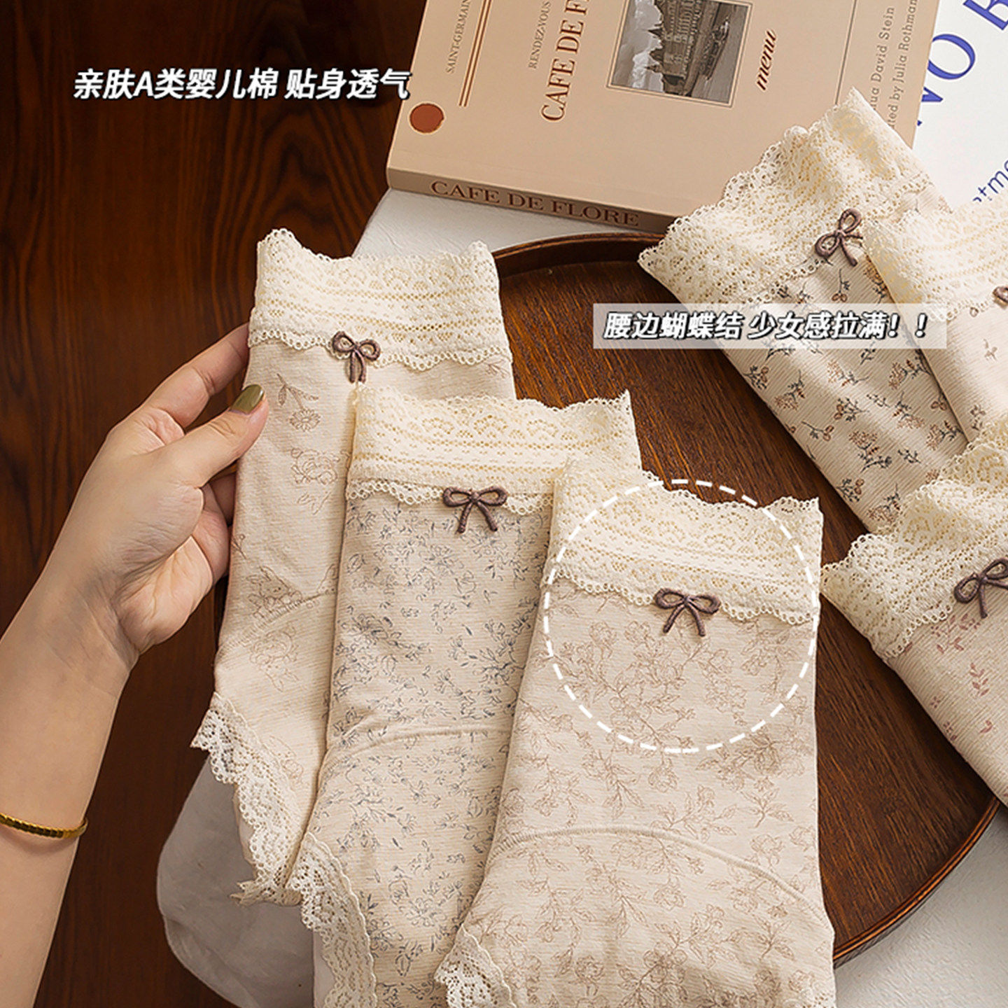 都市丽人田园风平角内裤女纯棉抑菌裆2025新款少女蕾丝小四角短裤