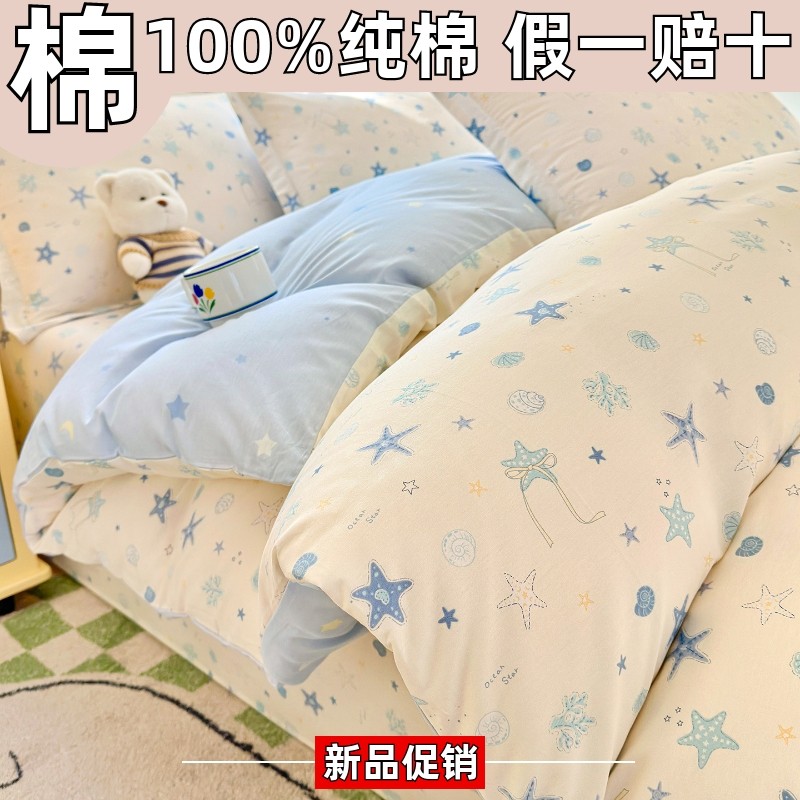 ins纯棉四件套床上2025新款全棉被套床单被罩学生单人宿舍三件套4