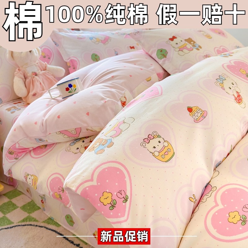 TeenieWeenie全棉水洗棉四件套100纯棉被套床单床笠款床上三件套4