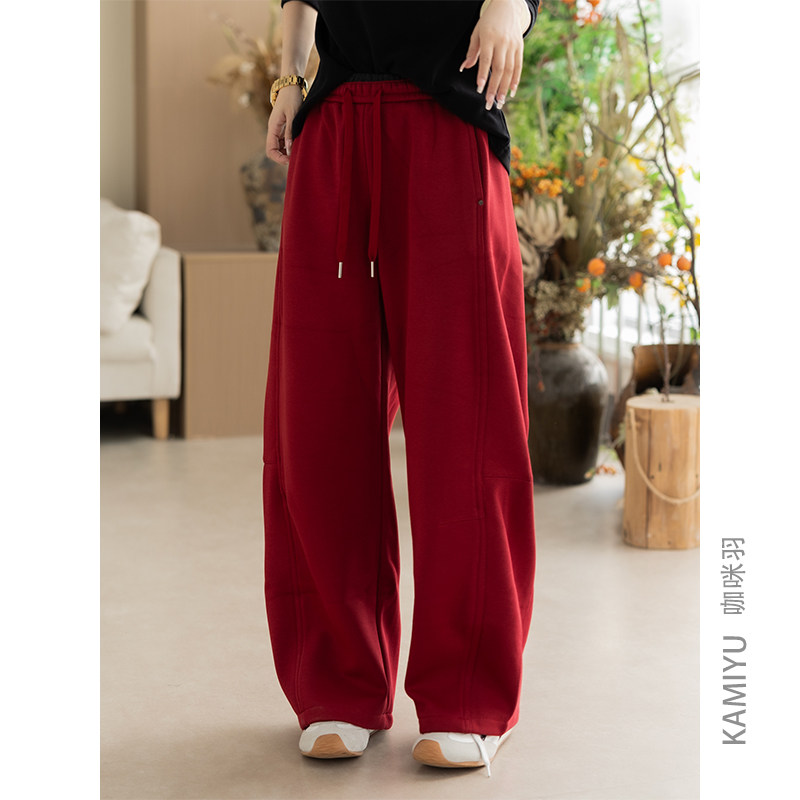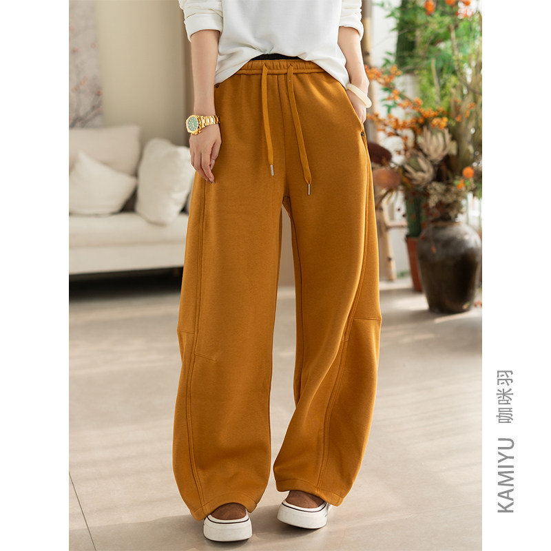 糯米裤女羊羔绒垂坠感软糯加绒加厚秋冬韩系慵懒松弛感阔腿裤TB