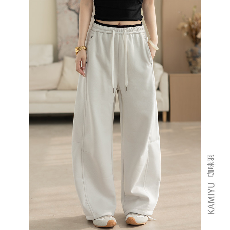 SIINSIIN弯刀卫裤2025新款女冬加绒垂感长裤运动休闲加厚裤子白色