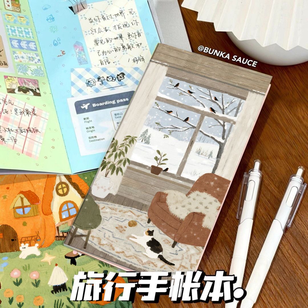 油画旅行记事本可爱diy笔记本TN学生账本便携内页高颜值手帐本