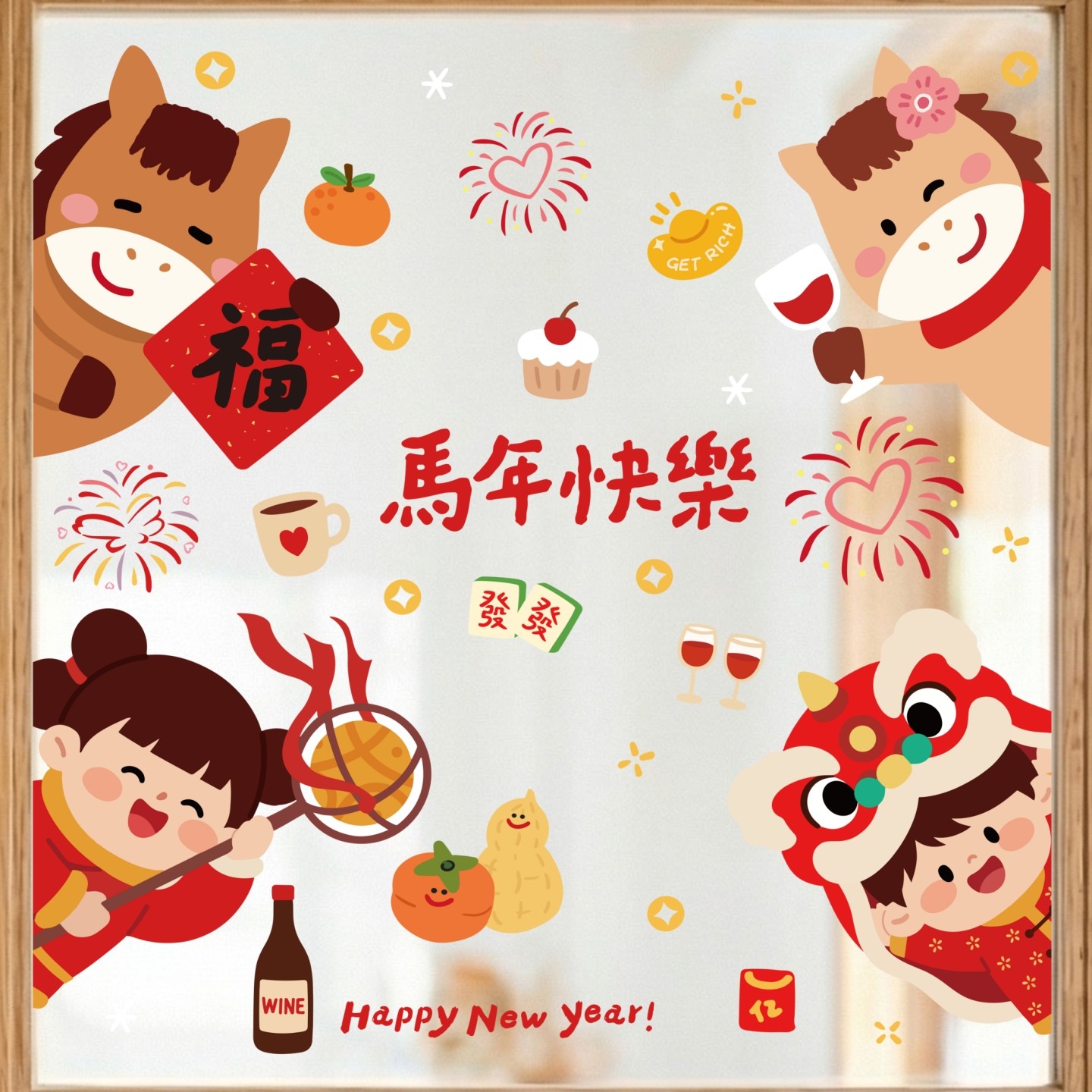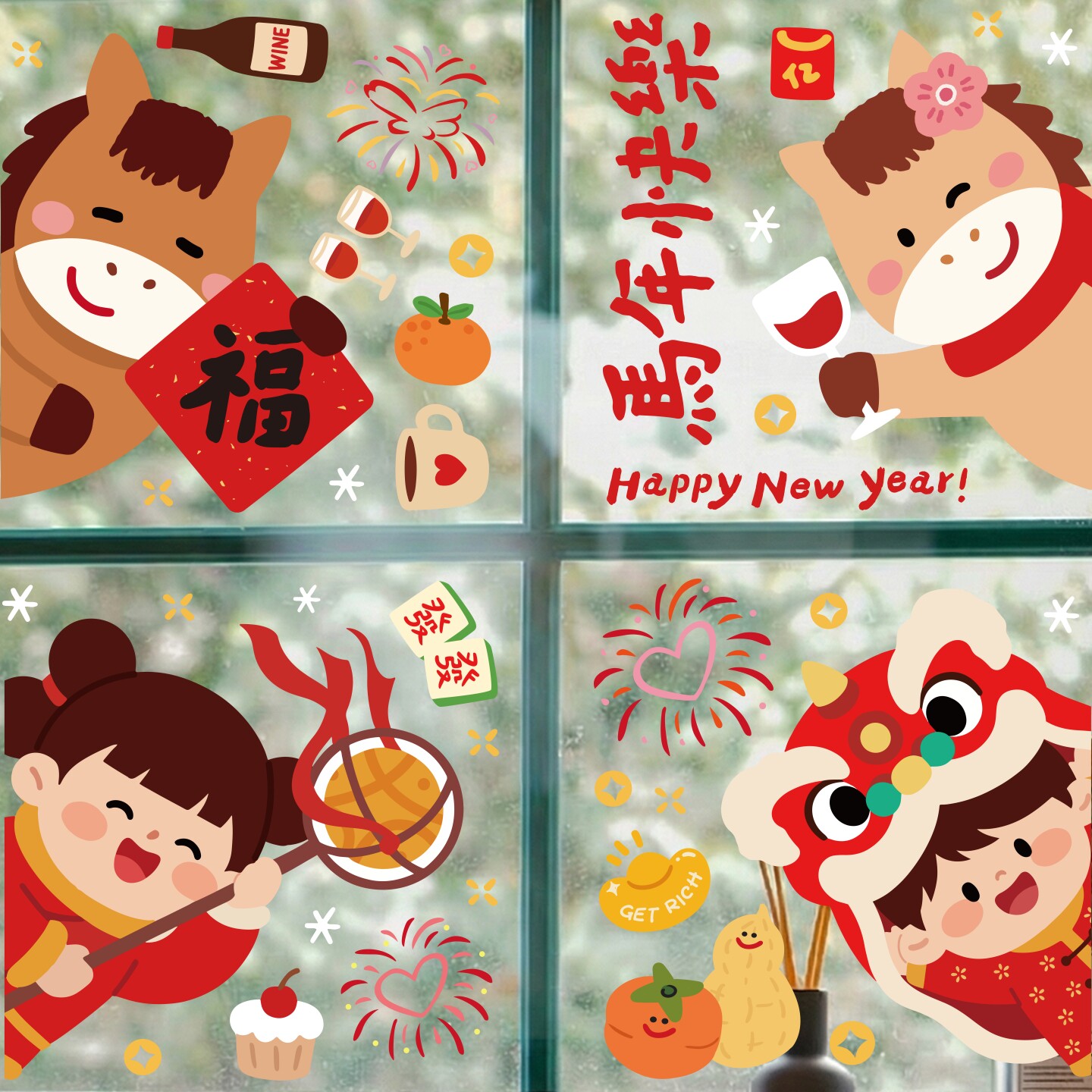 2026新年窗花马年装饰新款玻璃门贴纸静电橱窗贴春节氛围布置贴画