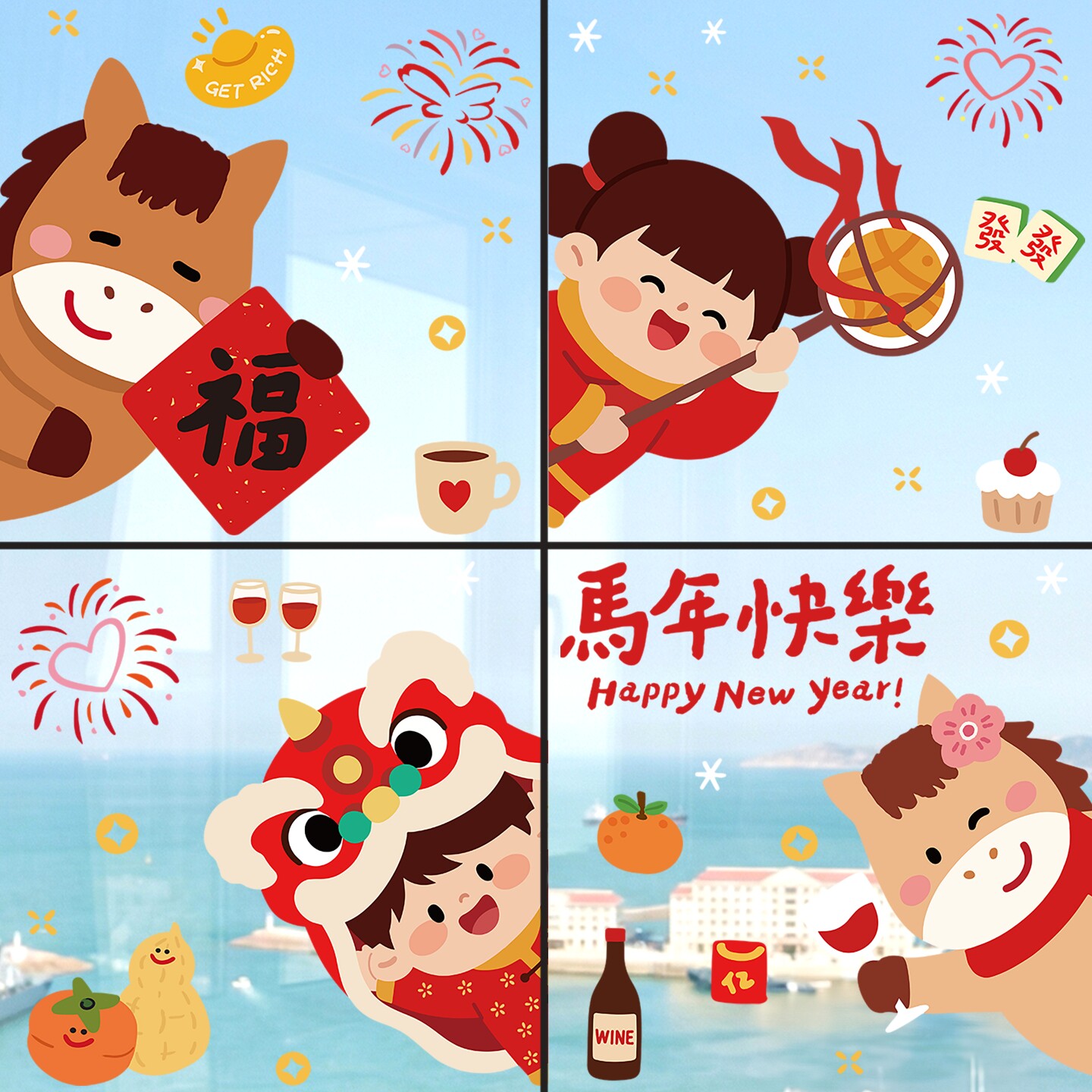 2026新年马年橱窗玻璃贴画装饰随心贴春节过年喜庆年画剪纸窗花贴
