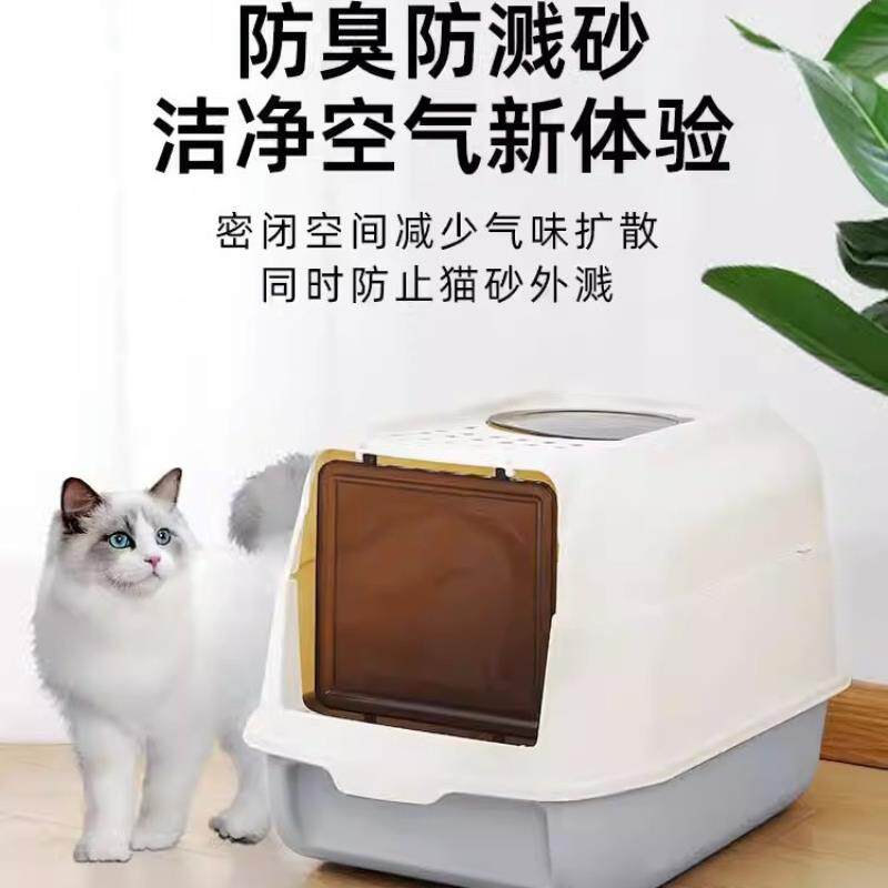 批发大号猫砂盆 全封闭除臭猫厕所防外溅半封闭猫砂盆宠物用品