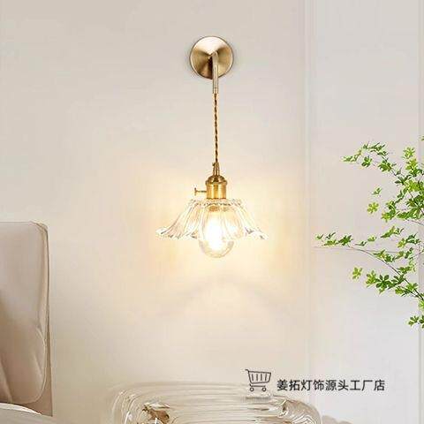 北欧轻奢法式网红壁挂玻璃壁灯简约现代温馨创意卧室床头长线吊灯