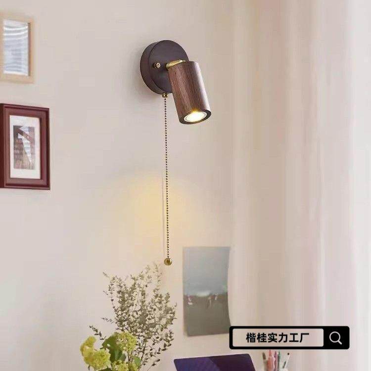 日式原木风壁灯简约民宿卧室床头壁挂式射灯走廊玄关阳台灯