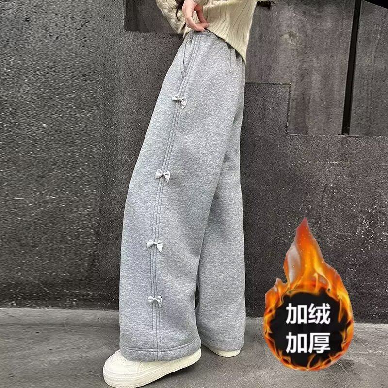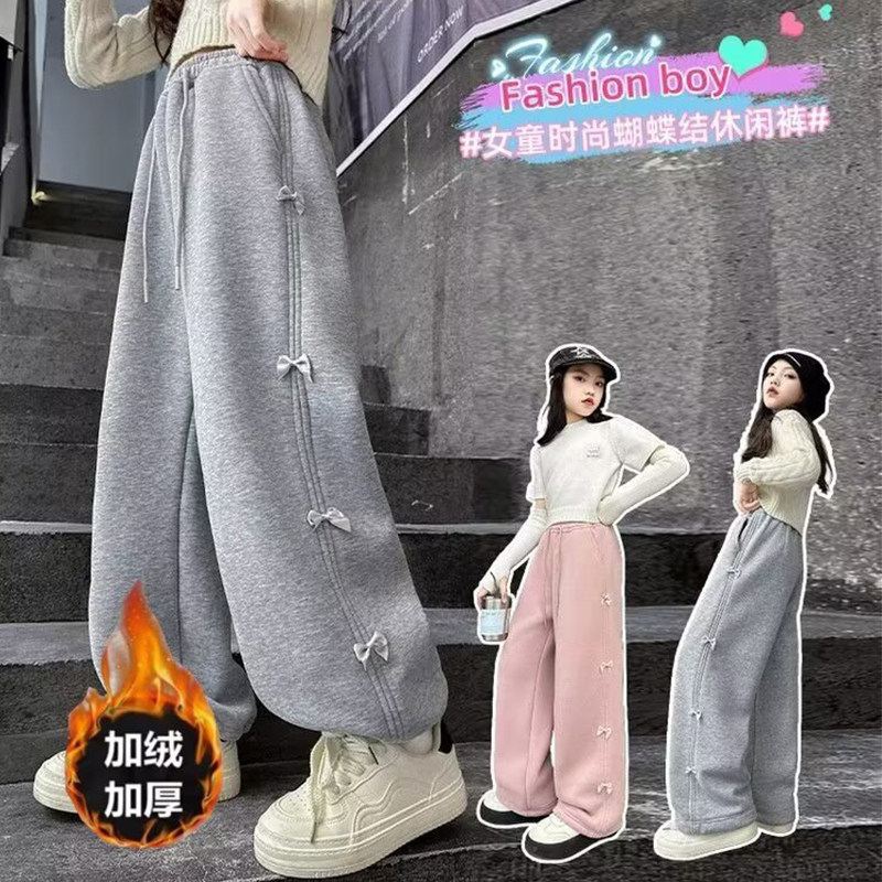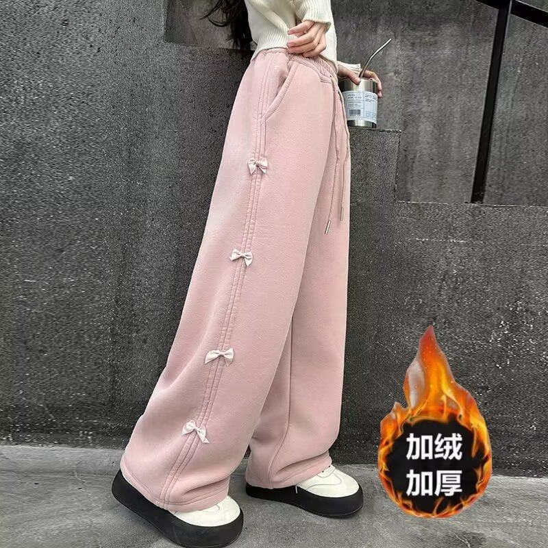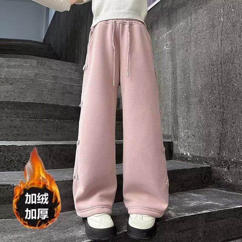 女童运动裤子2025秋冬新款中大童加绒卫裤儿童宽松直筒长裤阔腿