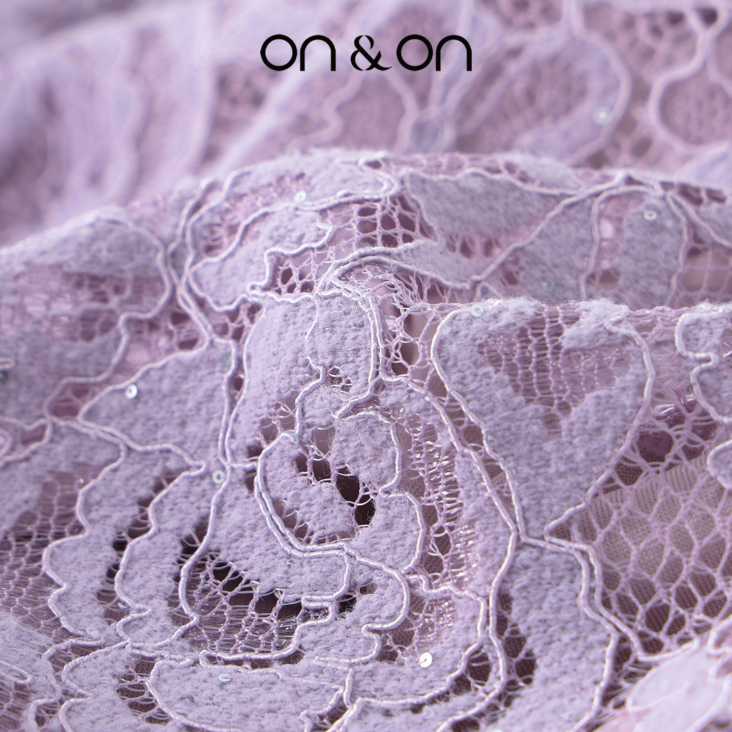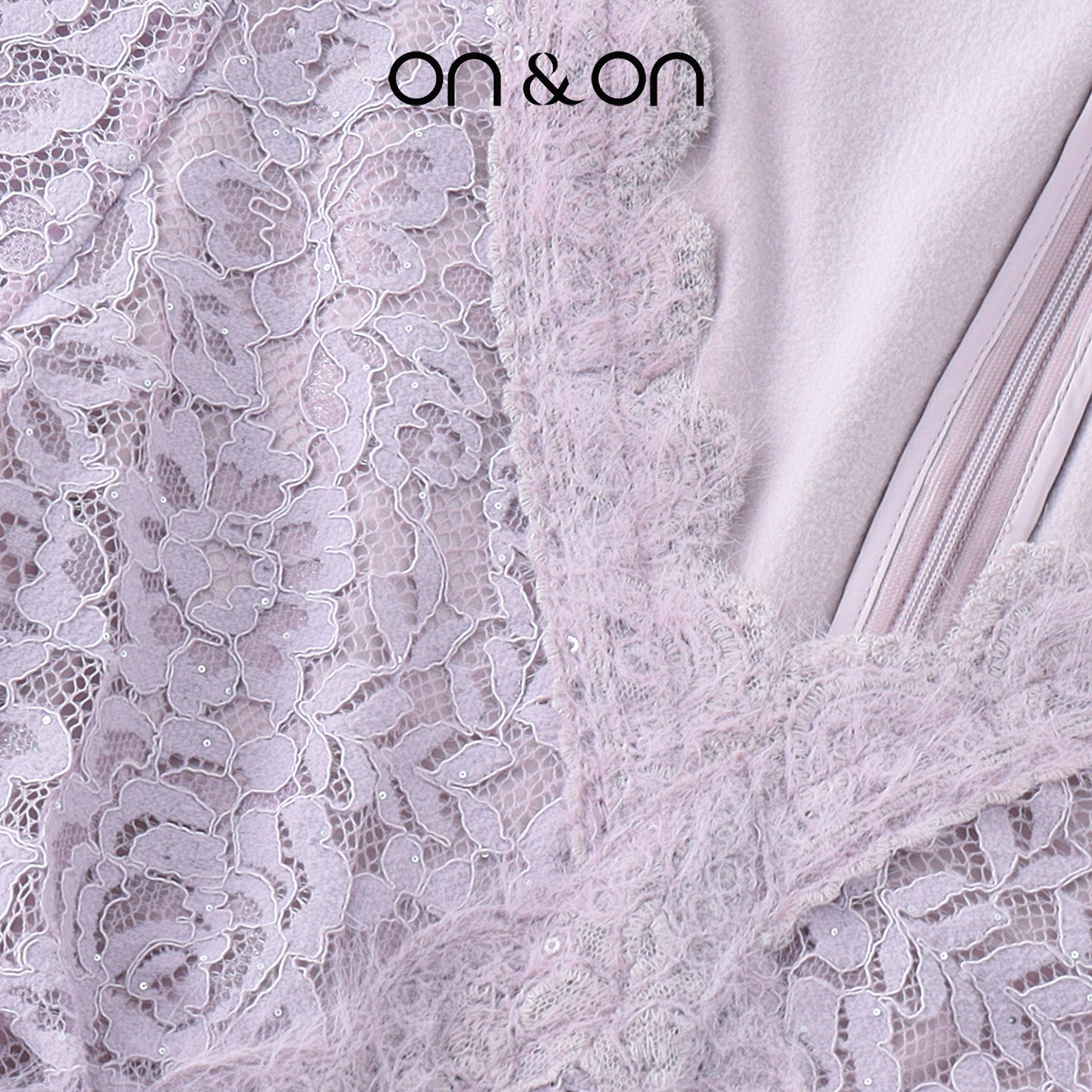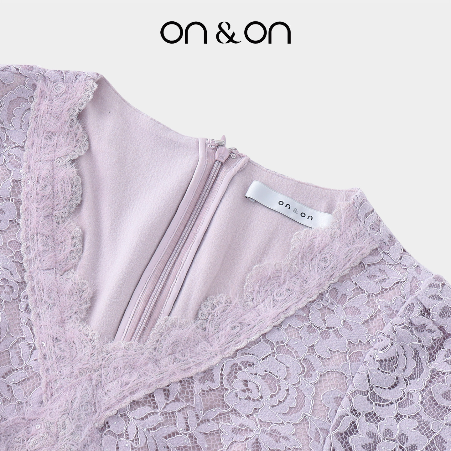 ON&ON/安乃安2025冬季新款韩系V领浪漫修身保暖植绒蕾丝连衣裙女