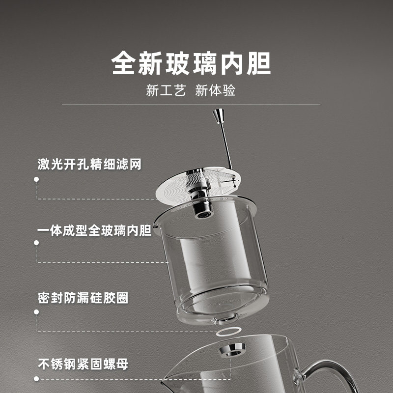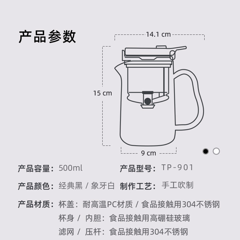 金灶TP-901全玻璃内胆飘逸杯泡茶壶家用新款按压式茶水分离神器