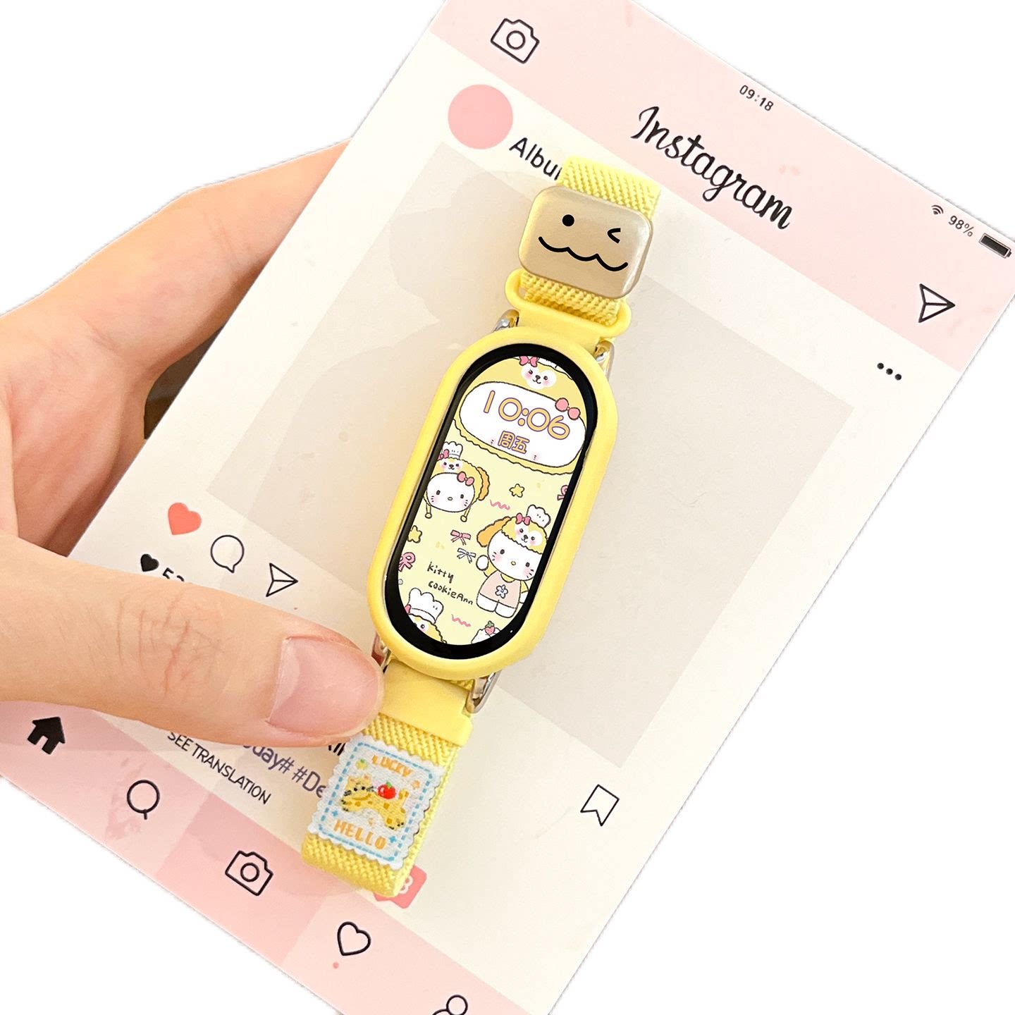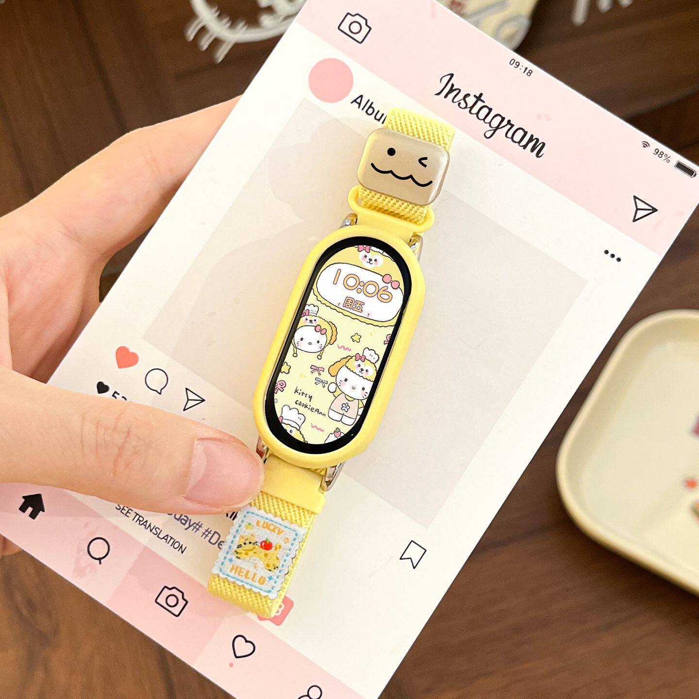 多巴胺小猫适用小米手环10表带9磁吸8编织尼龙弹力可爱奶黄猫咪7运动智能6NFC新款十代替换腕带夏运动透气