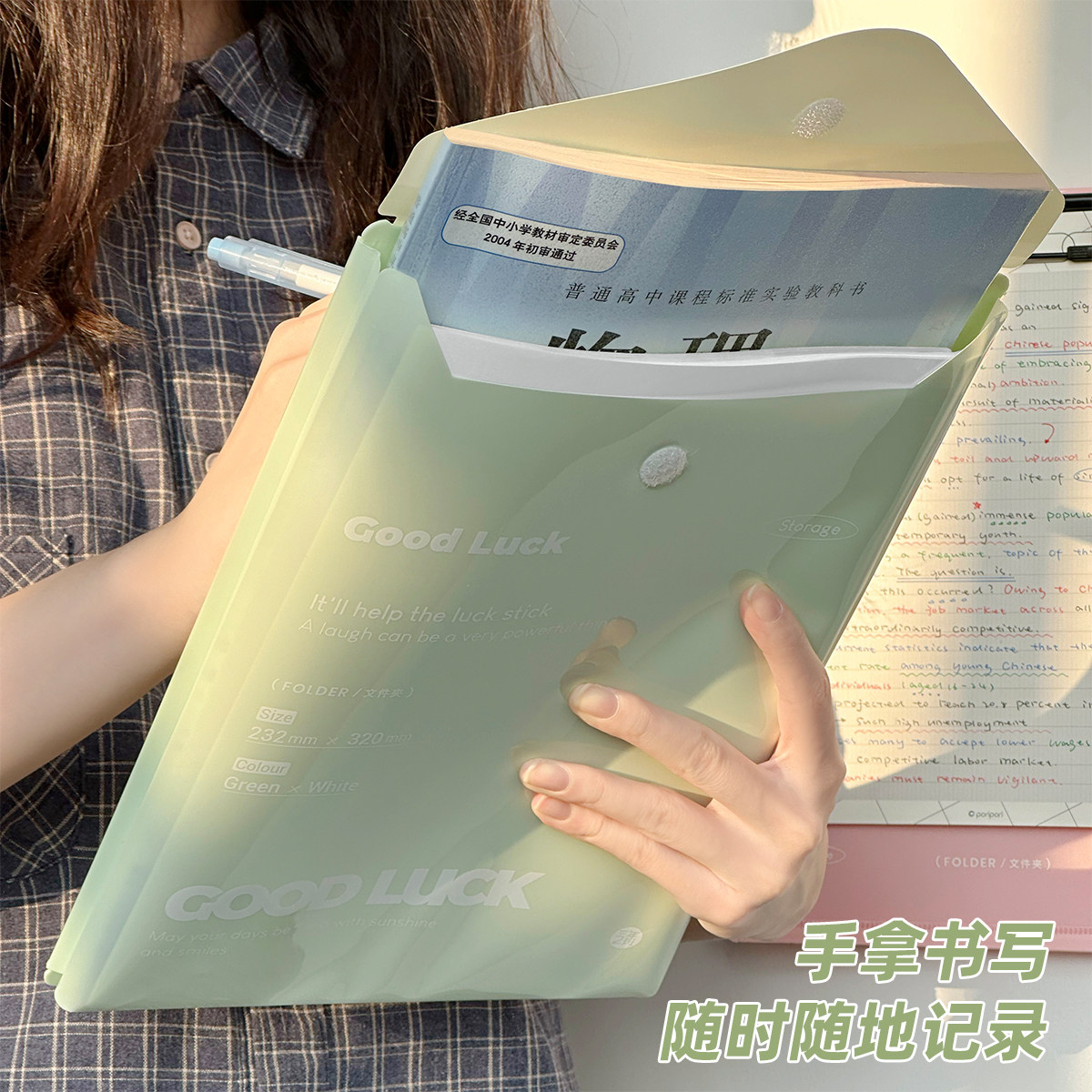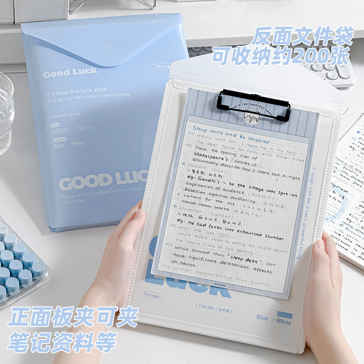 三年二班Goodluck板夹文件袋资料夹试卷收纳办公室高颜值写字垫板防水防尘板夹文件袋二合一小学生高中文具K