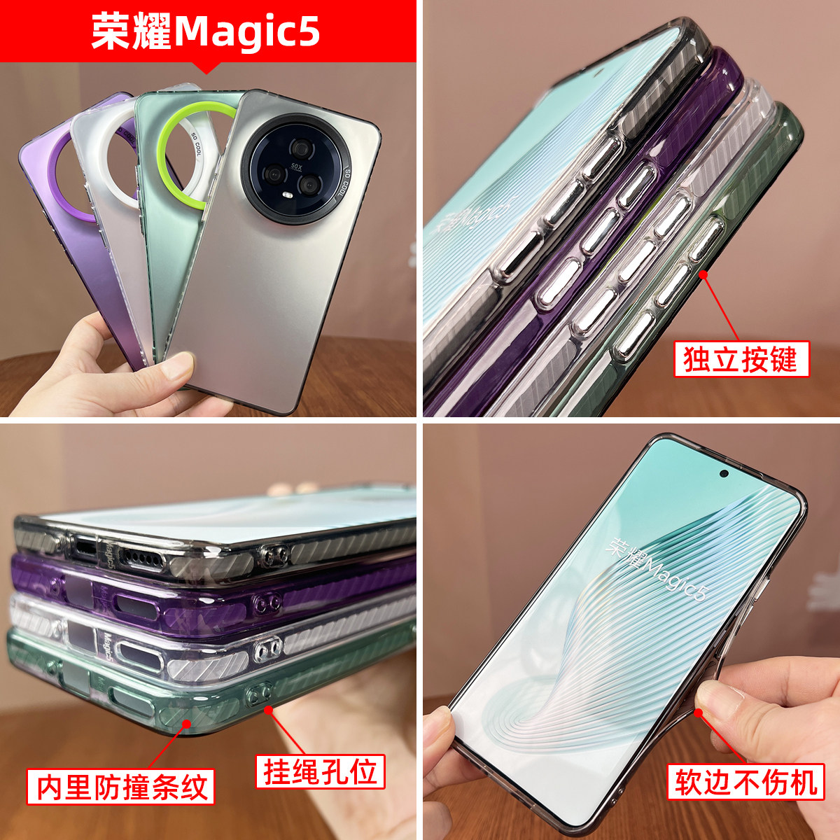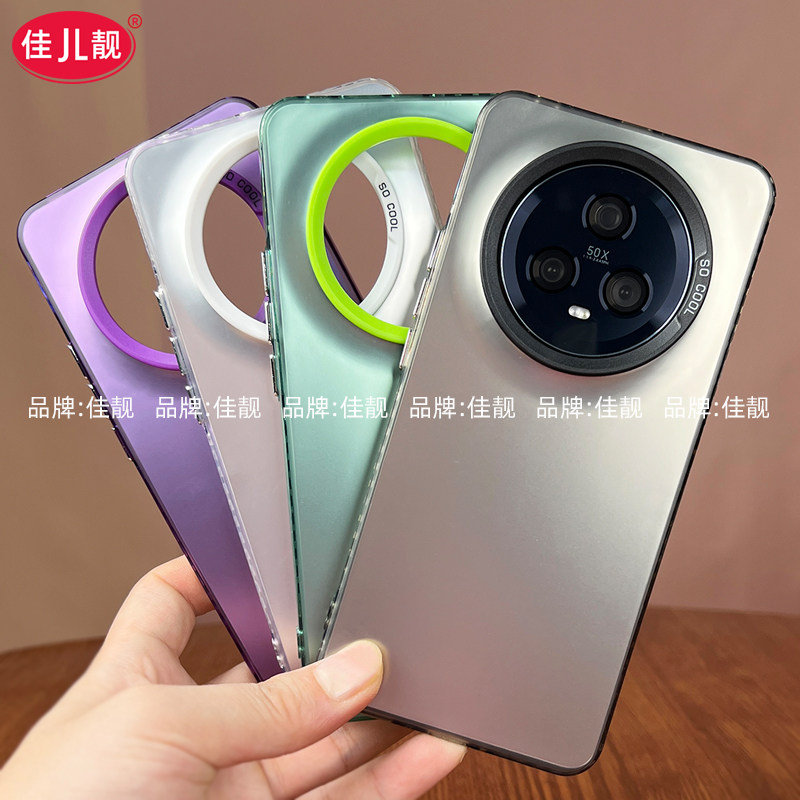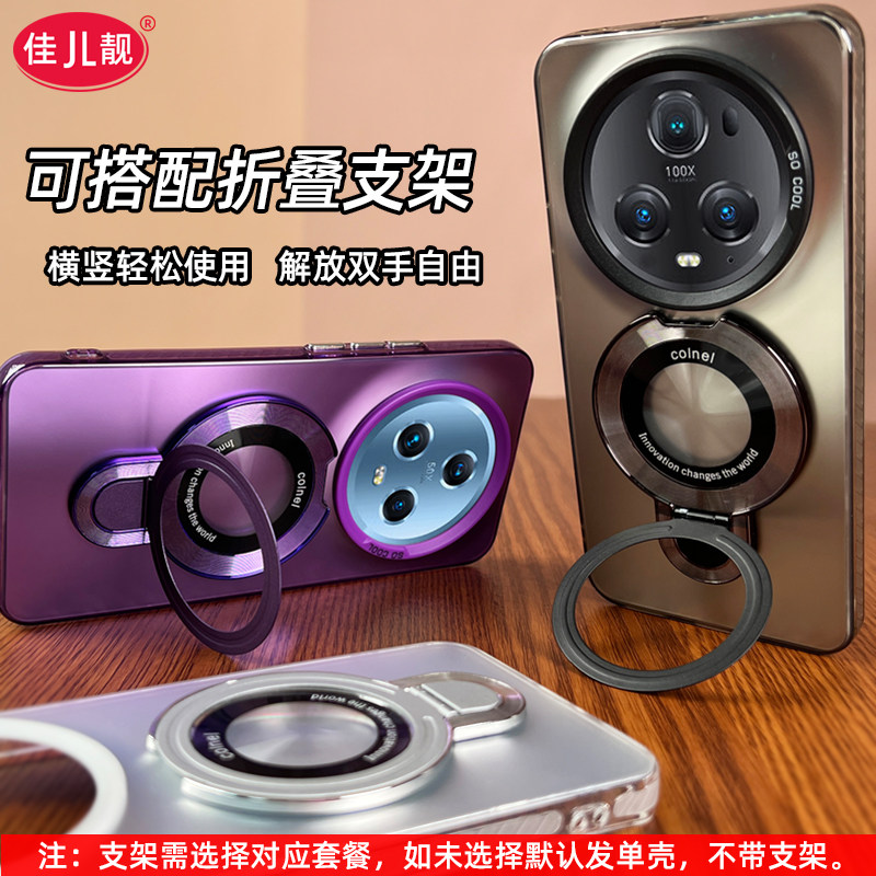 适用于荣耀magic5镜头大孔手机壳荣耀magic5pro新款保护套曲面屏高级感镭射支架外壳全包软边防摔彩银硬壳