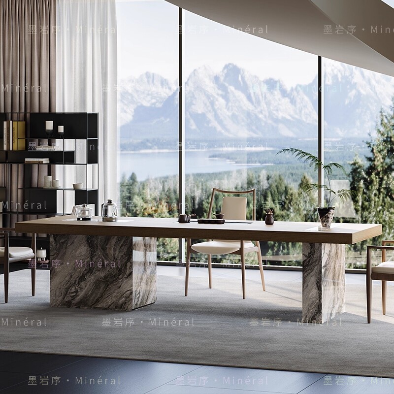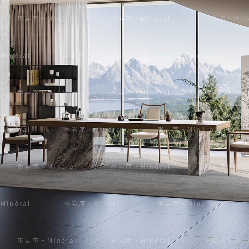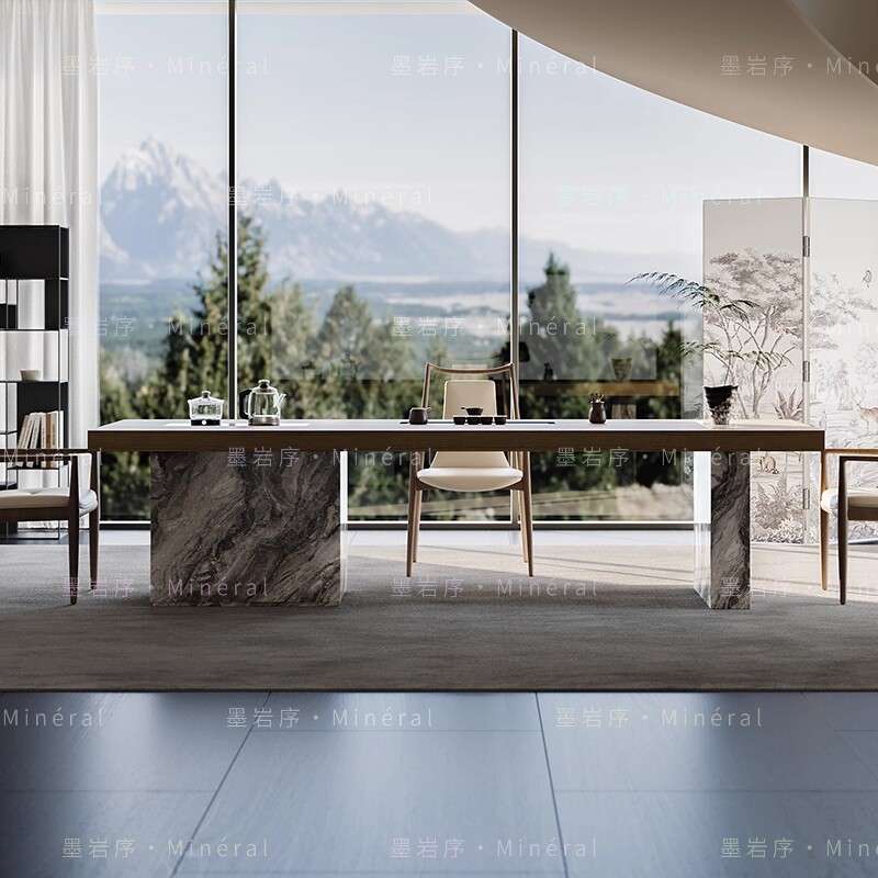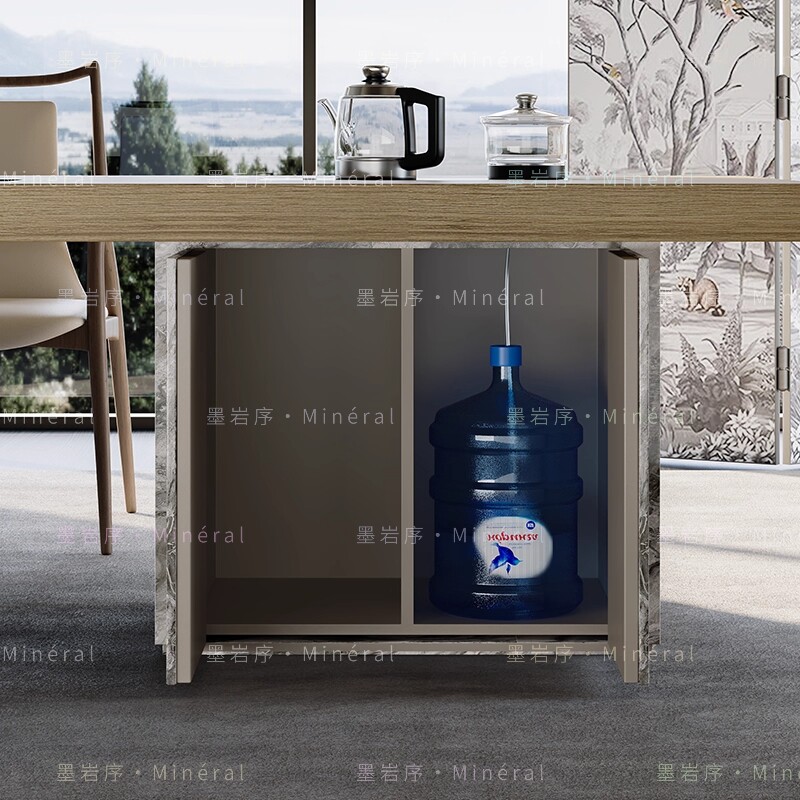 国家补贴2026新款意式黑胡桃木纹岩板茶台轻奢多功能茶桌椅组合
