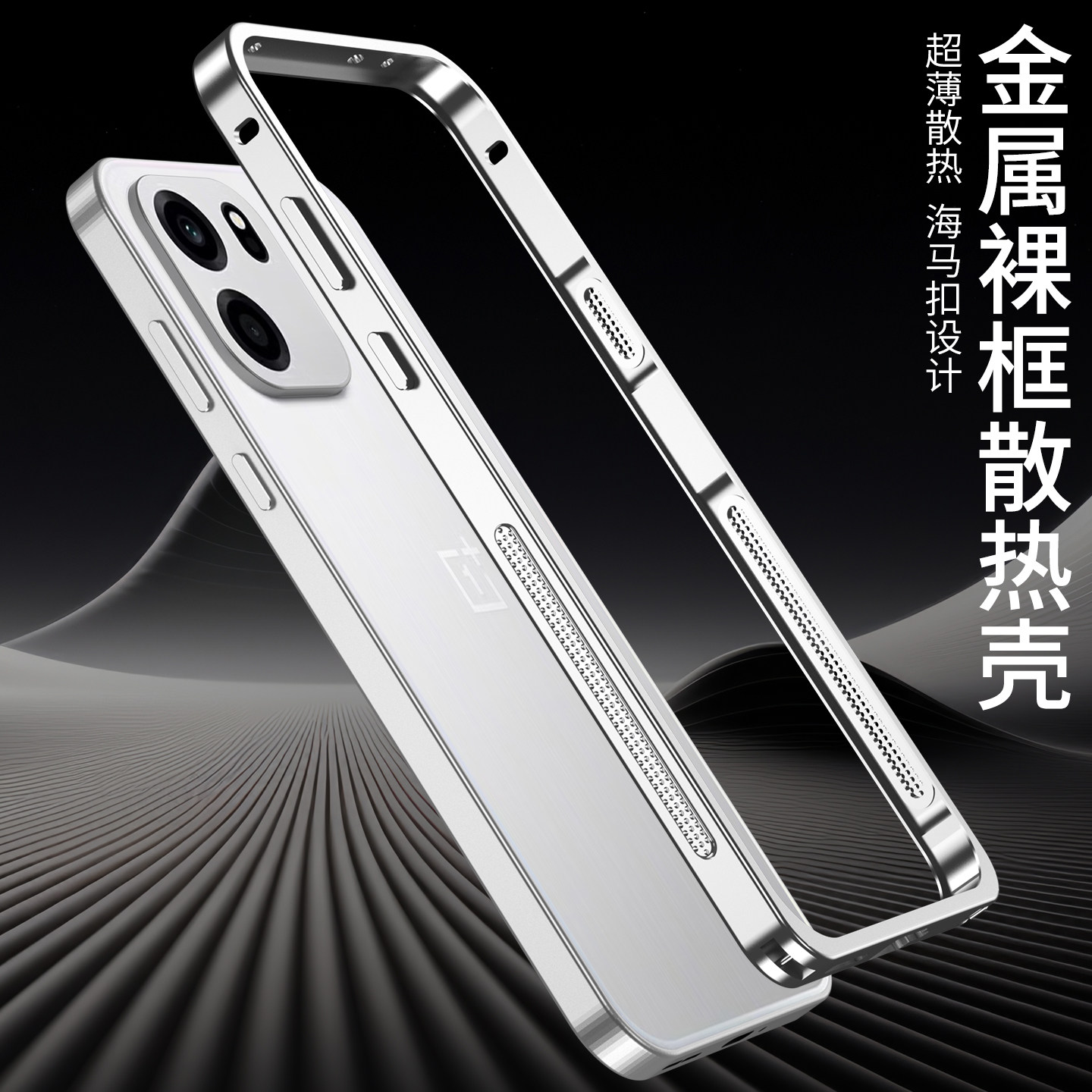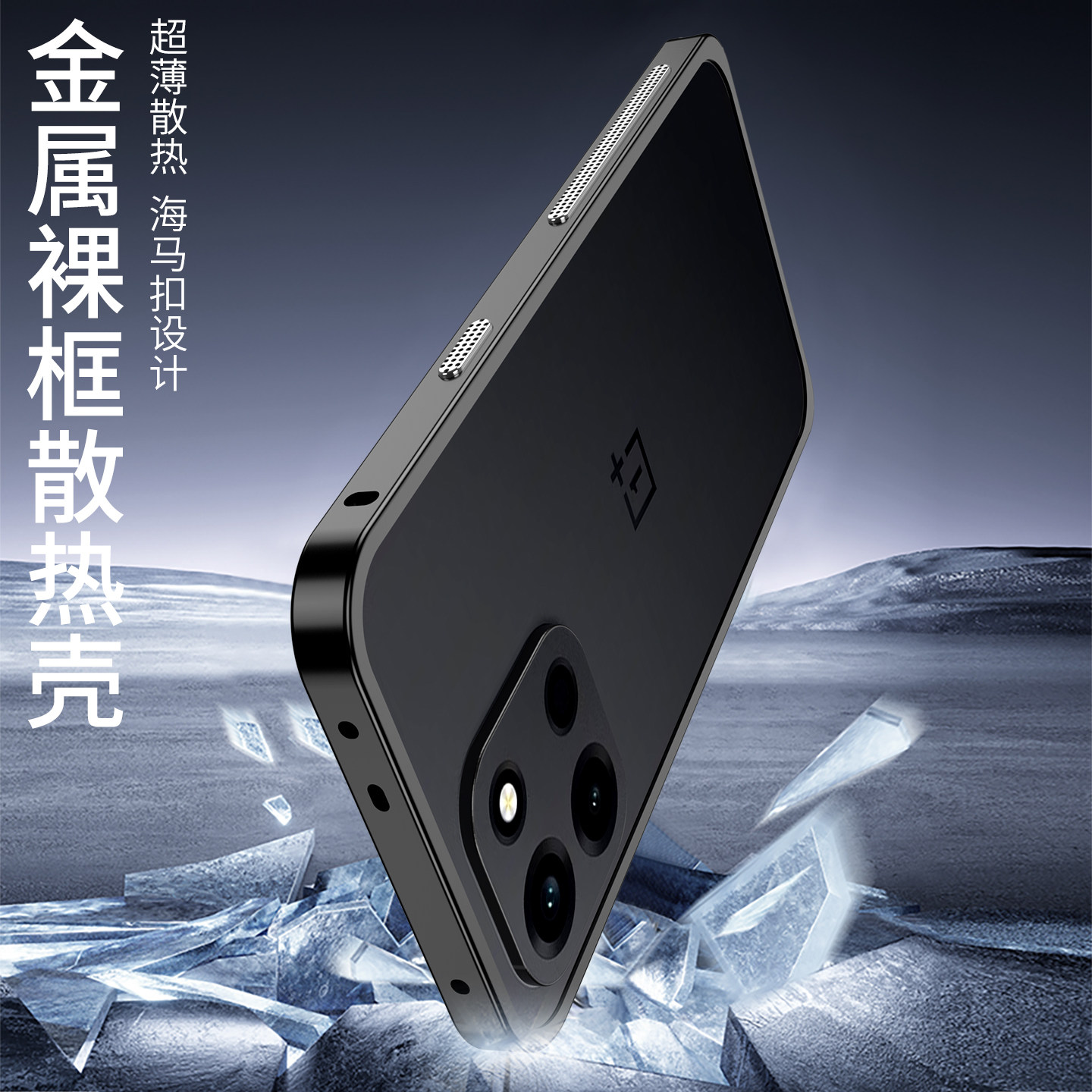 金属散热单边框适用一加Turbo6V手机壳海马扣铝合金新款1+turbo6防摔保护套oneplus男女简约超薄高级感裸机硬