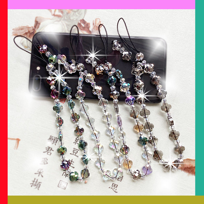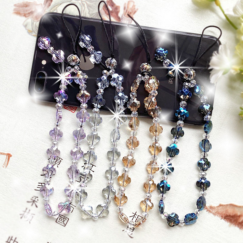 四叶草幸运财富水晶石手机挂绳短款手腕绳新款链网红个性创意挂件