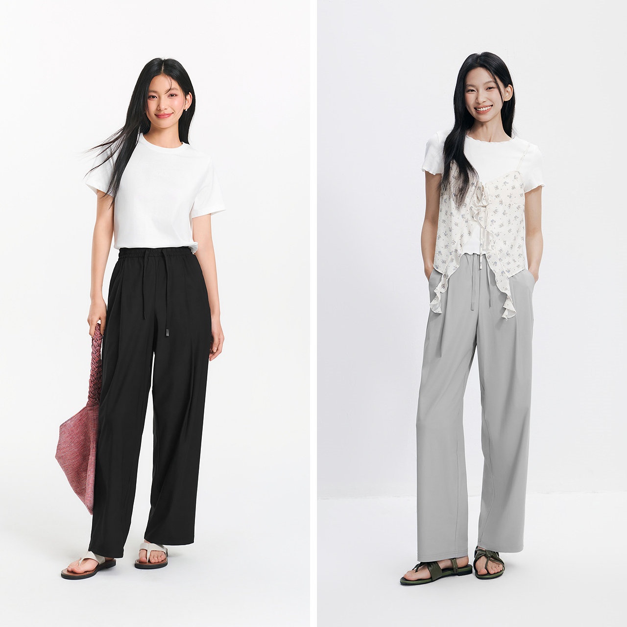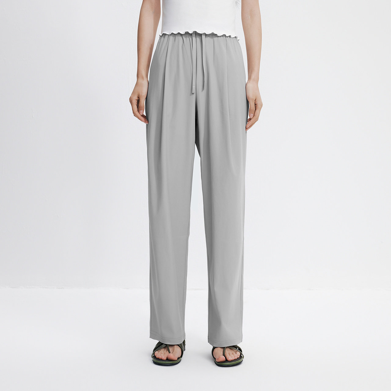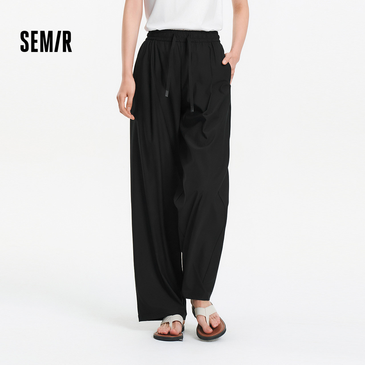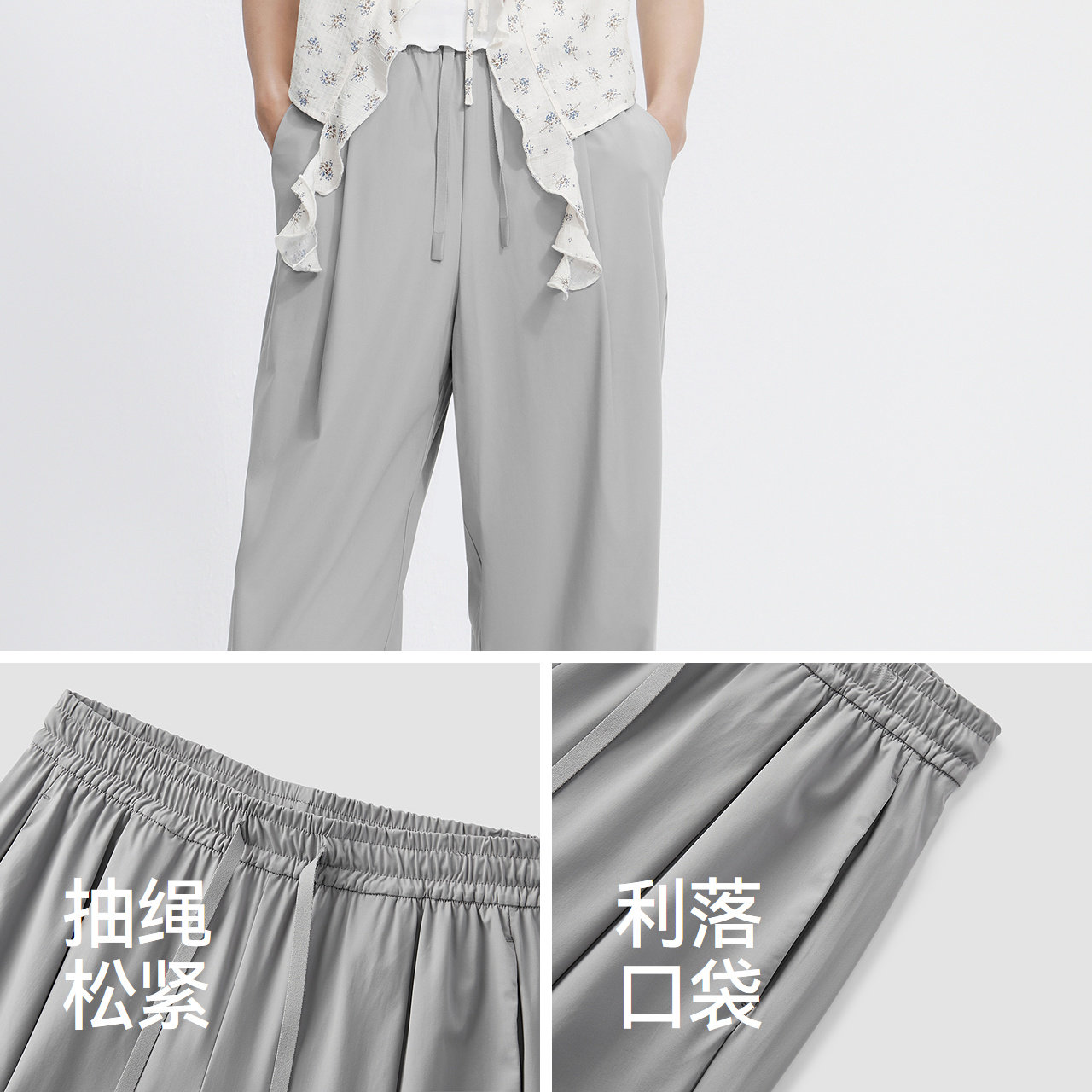 森马休闲裤女夏防晒凉感吸湿速干打褶长裤纯色慵懒登山徒步阔腿裤