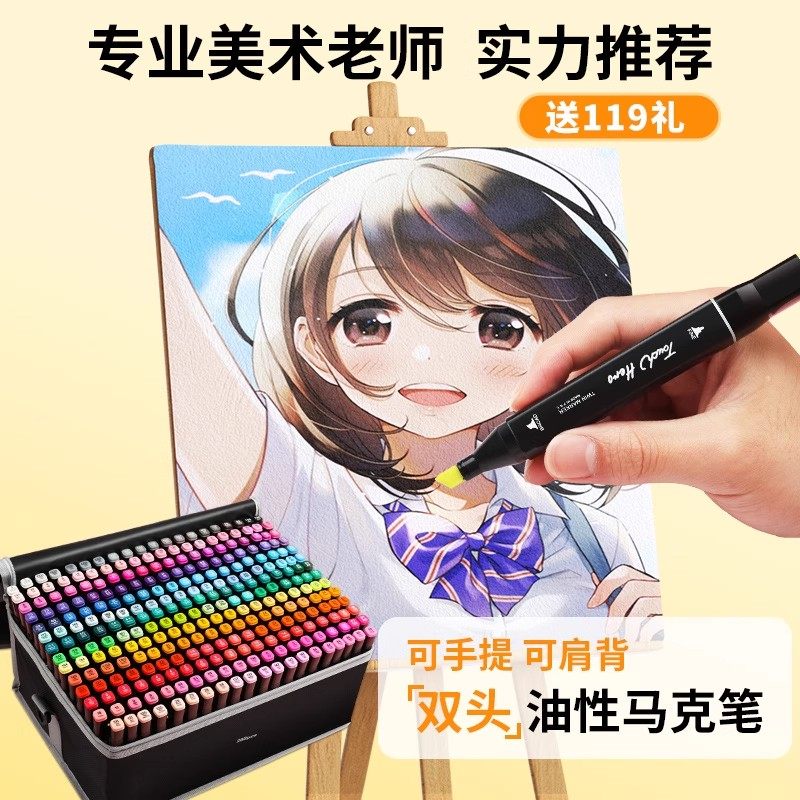 Touch马克笔小学生美术专用油性双头彩色笔动漫绘画60/80/120/168色儿童水彩画笔可叠色涂鸦笔套装画画景观