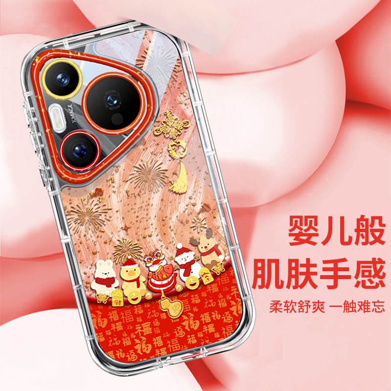 新年款适用华为pura70手机壳镭射羽纱p60pro全包ultra精孔镜头p50防摔耐磨p40喜庆p70pro+过年p30透明硅胶p60