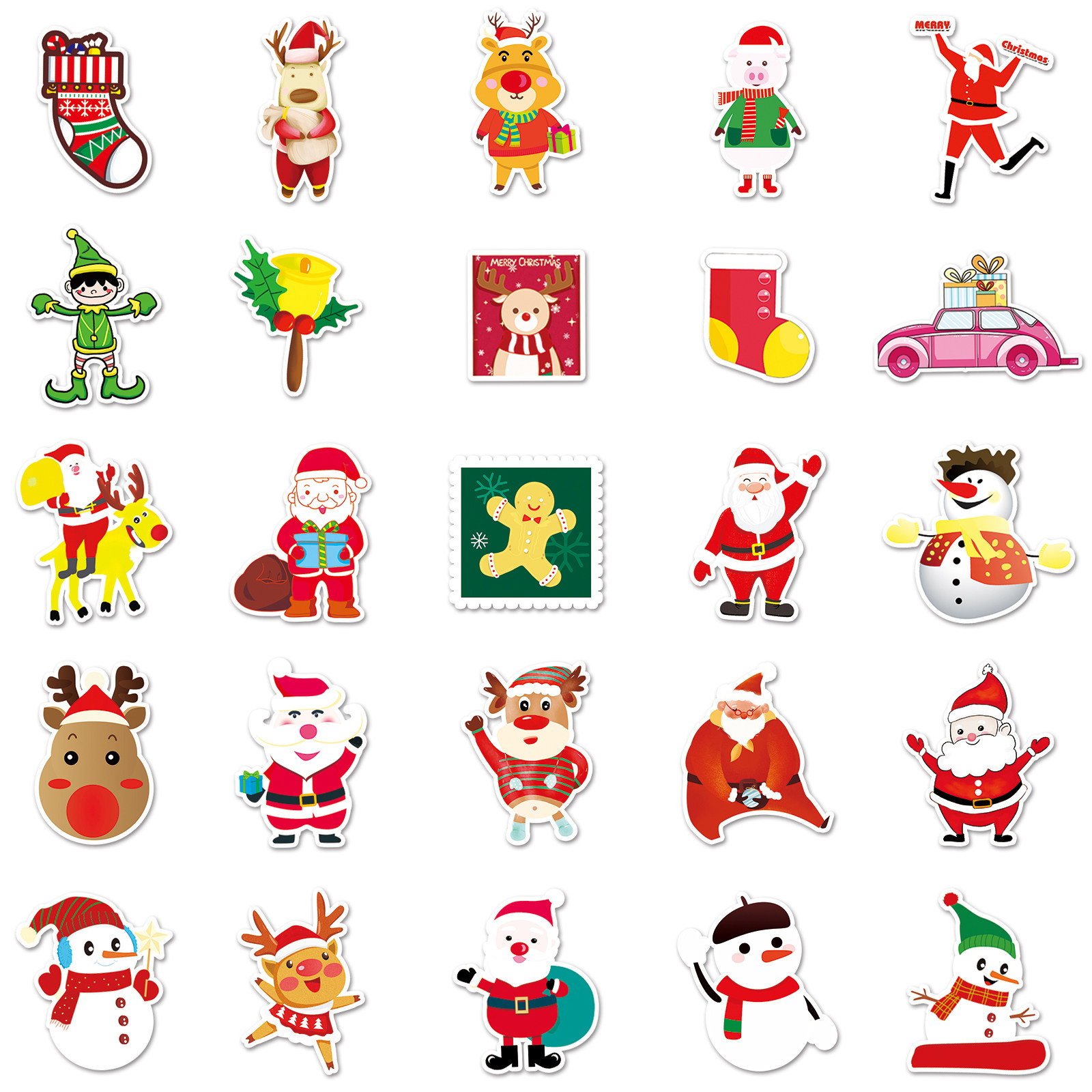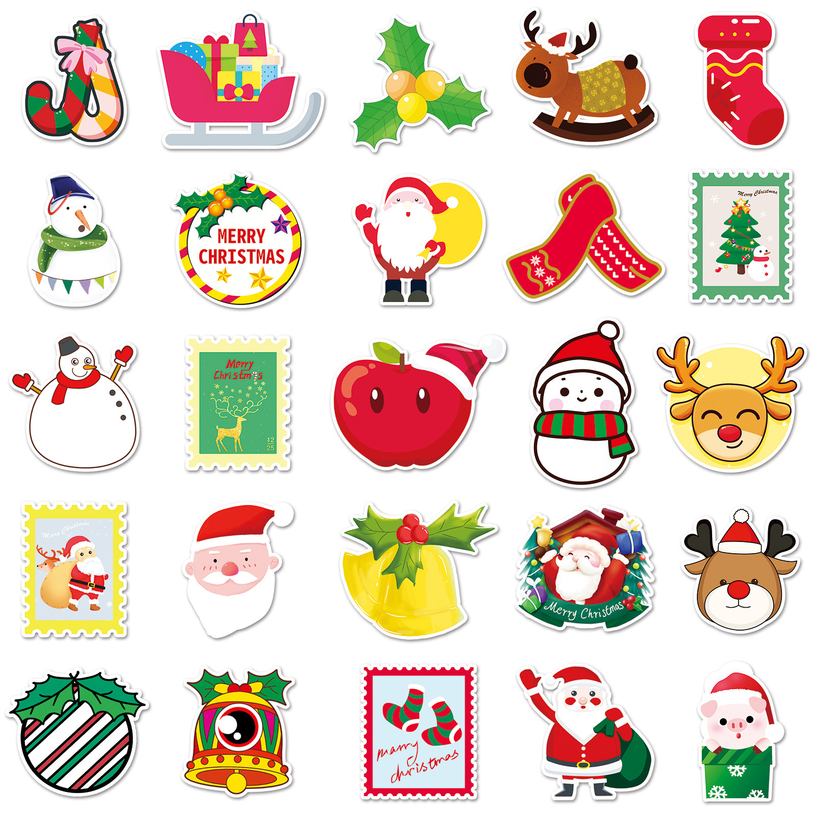 100张圣诞节贴纸旅行箱汽车自行车电脑咕卡吉他玻璃装饰外国喜庆节日新年卡通可爱涂鸦个性圣诞老人礼物贴画